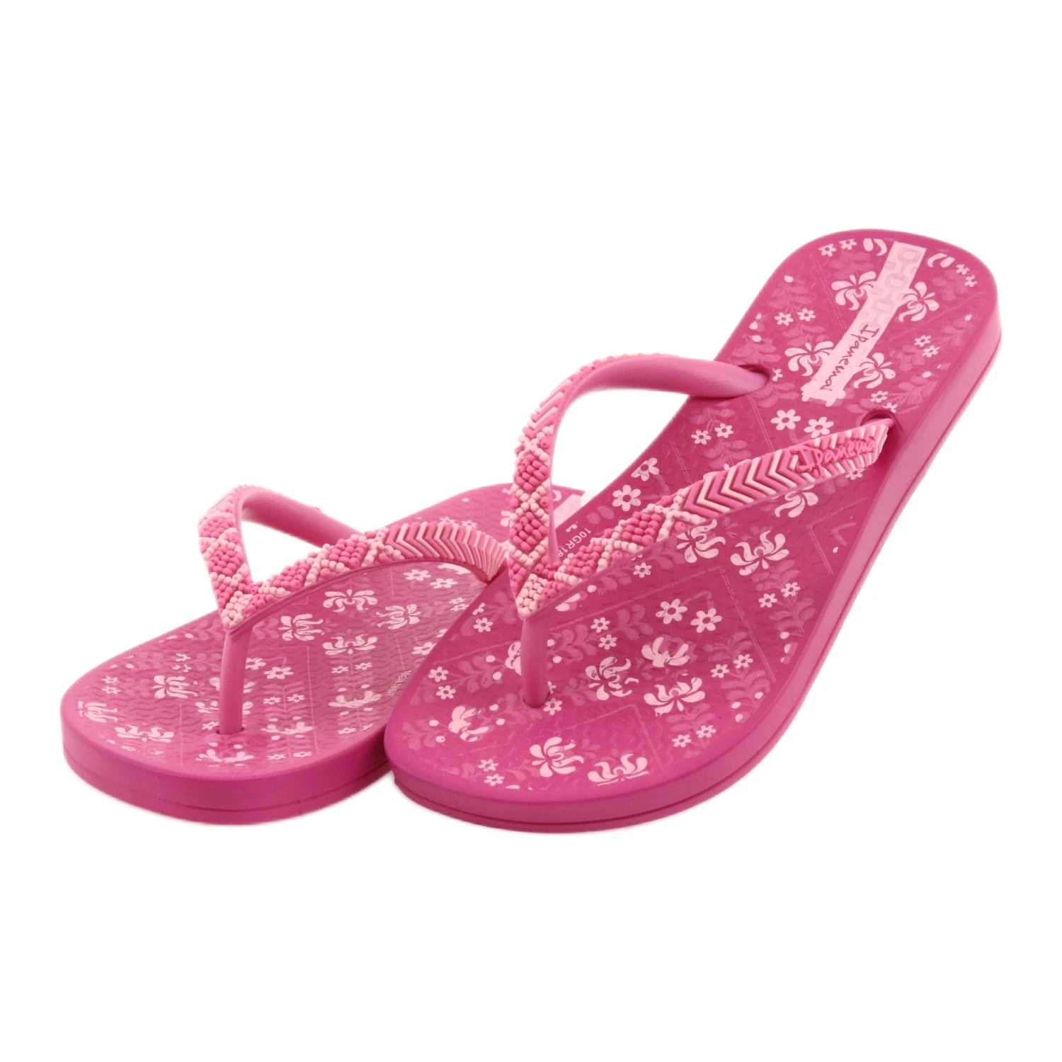 Tongs roses Ipanema 82519 pour filles en rose. Chaussures en matière légère et écologique. Sangles de chaussures en caoutchouc. Chaussures décorées dans un design à la mode. Disponible dans les tailles 30-35.
