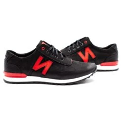 Les chaussures décontractées noires pour hommes avec des éléments rouges peuvent être la finition parfaite pour un look de tous les jours. Ils sont fabriqués en cuir naturel et ont la même semelle intérieure à l’intérieur, afin que l’air puisse librement échanger et que les pieds ne transpirent pas excessivement. Ce modèle est une parfaite composition de confort et d’élégance.