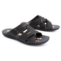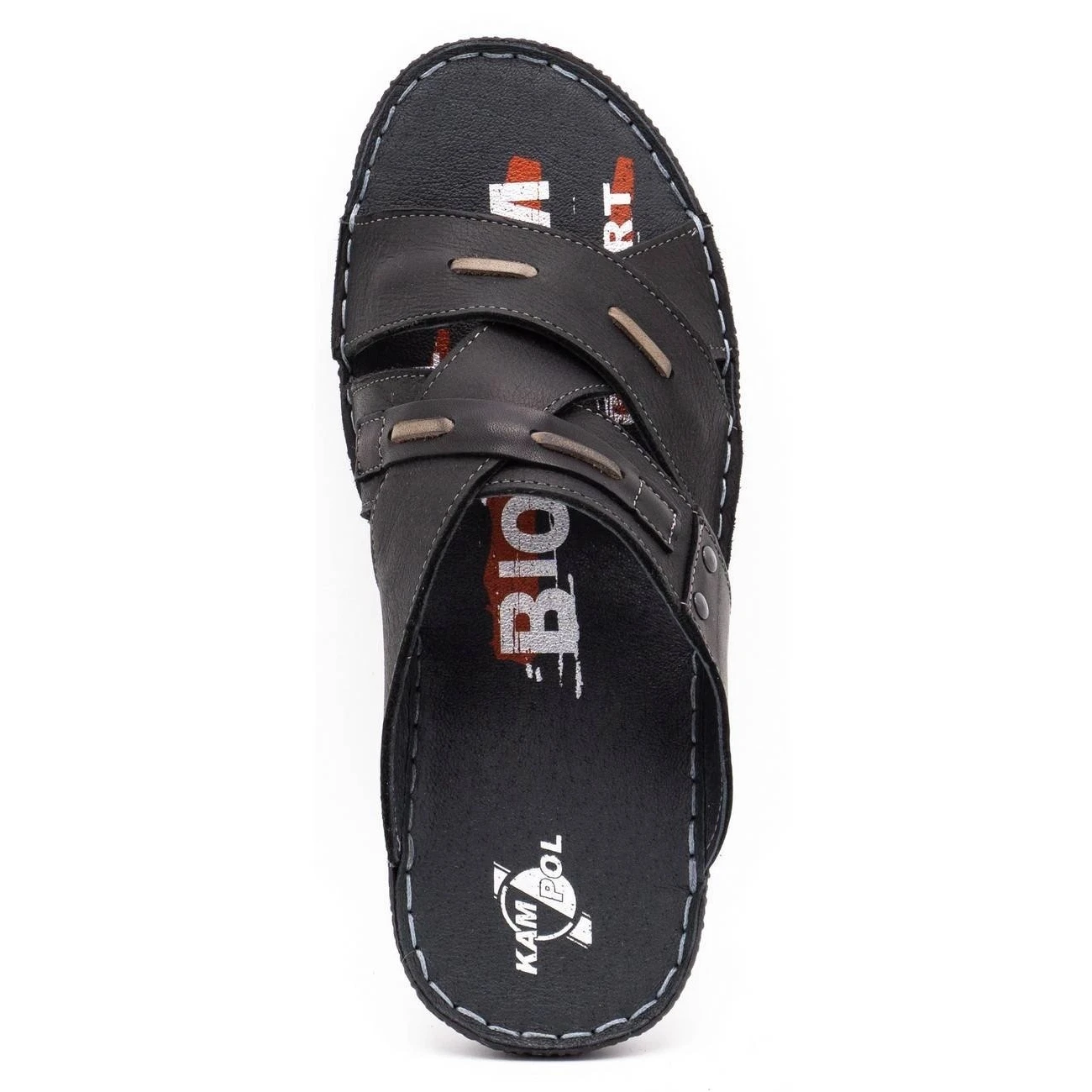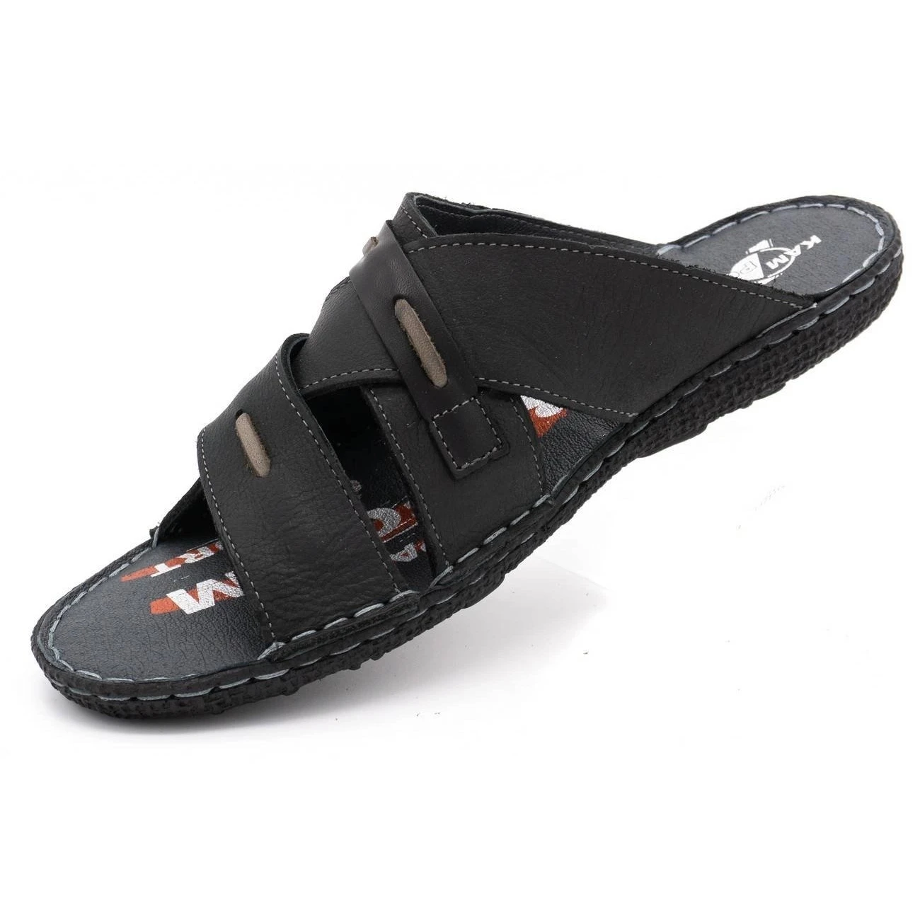 Les chaussons noirs pour hommes Kampol sont en cuir naturel, ce qui les rend très confortables. Trois sangles entrelacées maintiennent bien le pied. La marche confortable est assurée par une semelle intérieure en cuir et une semelle bien profilée. Les chaussures cousues et collées sont durables pendant des années. Esthétiquement faites, ils sont le complément parfait à une tenue d’été.