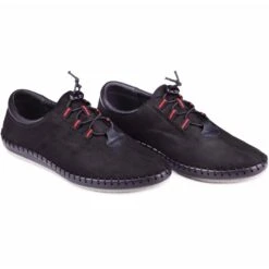 Noires, les chaussures pour hommes du fabricant polonais Kampol mettent l’accent sur les tenues décontractées. Ils sont faits de cuir naturel qui laisse passer l’air et s’adapte bien à la forme du pied. La semelle cousue efficacement et le laçage caoutchouté rendent les chaussures très originales. La couleur classique va bien avec un jean.