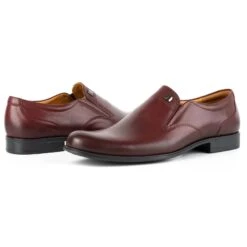Les chaussures Kampol pour hommes dans une élégante couleur bordeaux sont le complément parfait à une tenue élégante. Un nez lisse et allongé leur ajoute du style. Ils sont fabriqués en cuir naturel qui s’adapte bien à la forme du pied et rend les chaussures très confortables. Sur les côtés, de petites bandes élastiques permettent de glisser facilement le pied dans les chaussures sans se baisser.