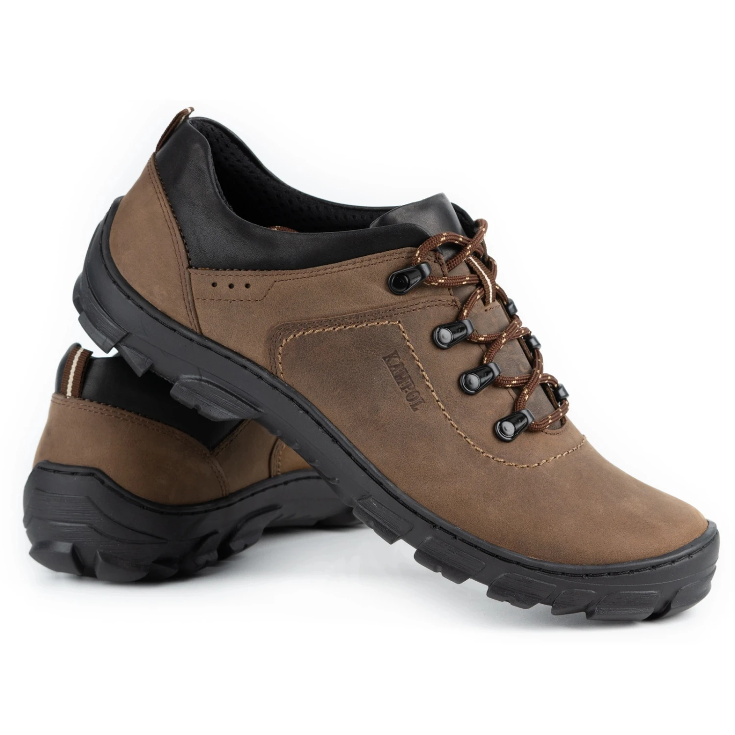 Les chaussures de trekking pour hommes du fabricant polonais Kampol sont en cuir naturel de couleur olive. Ils ont un laçage traditionnel et une semelle Ă©paisse avec une bande de roulement, grâce Ă laquelle ils sont confortables et tiennent bien sur n’importe quelle surface. Vous pouvez les porter pour la randonnĂ©e, la marche dans les bois, ainsi que des jeans de tous les jours. La tige et la semelle intĂ©rieure sont en cuir, la doublure Ă l’intĂ©rieur de la chaussure est en matĂ©riau souple.
