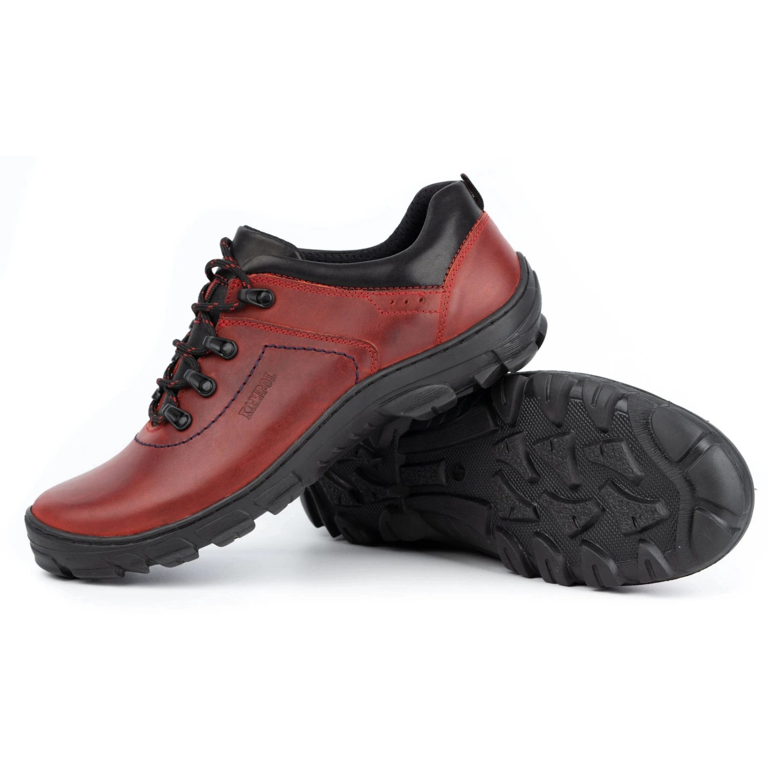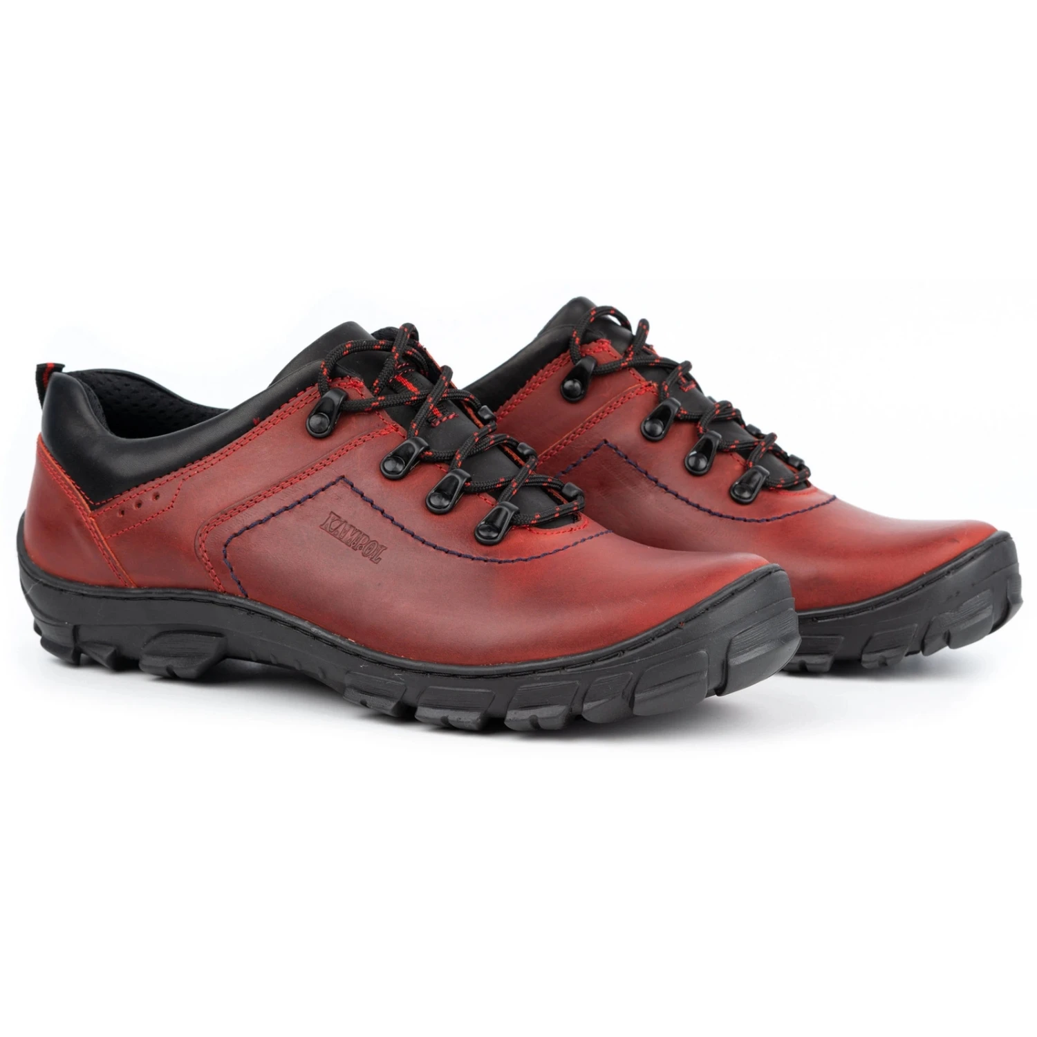 Les chaussures de trekking Kampol pour hommes sont non seulement confortables pendant la marche, mais aussi d’une apparence impeccable. La couleur originale, rouge brique, leur donne un look original. Ils sont fabriquĂ©s en cuir naturel qui s’adapte parfaitement Ă la forme du pied et ont une semelle Ă©paisse avec protecteur pour une bonne adhĂ©rence sur n’importe quelle surface. La tige et la semelle intĂ©rieure sont en cuir, la doublure Ă l’intĂ©rieur de la chaussure est en matĂ©riau souple.