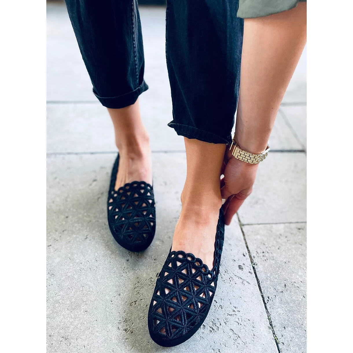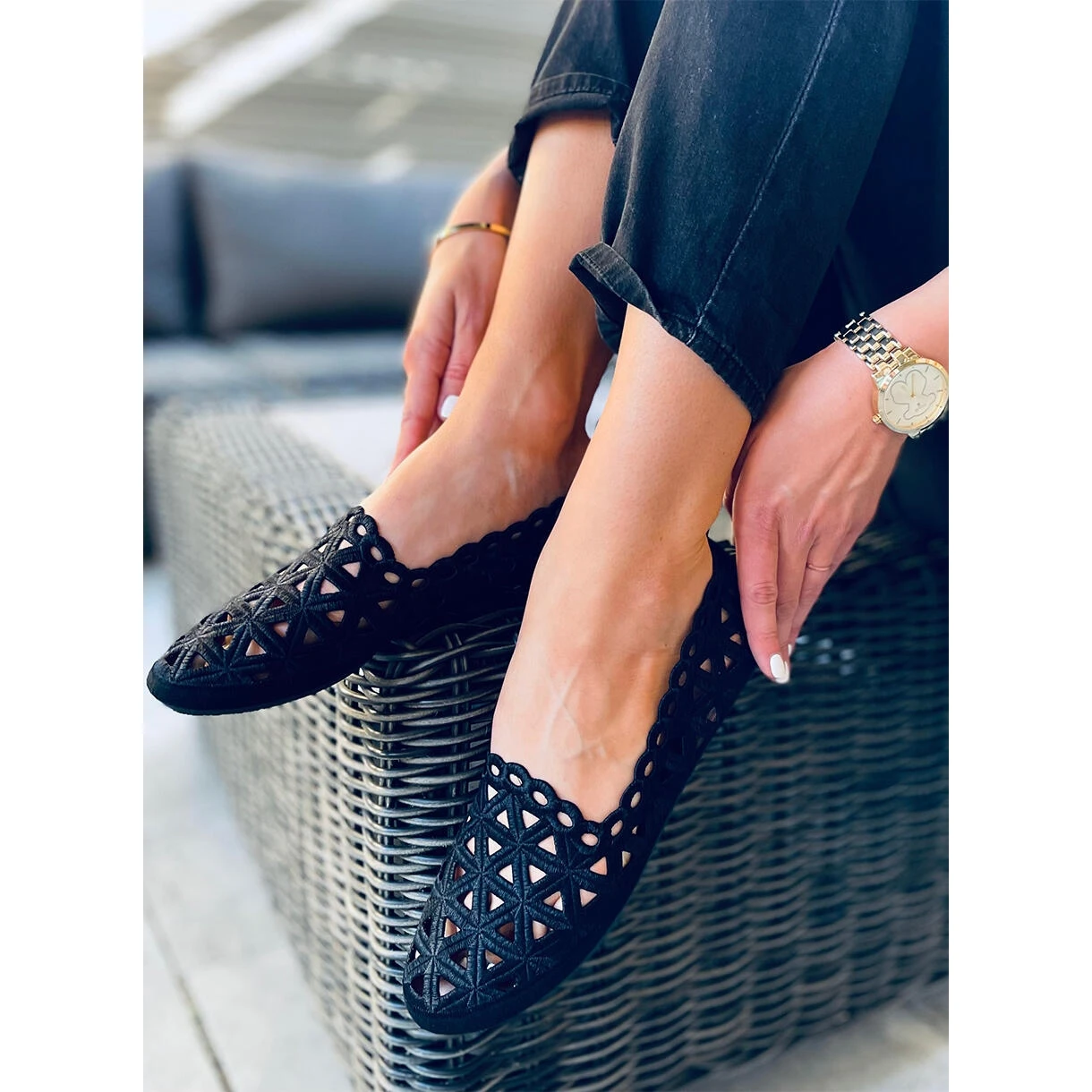 Ballerines femme ajourées. Ils ont l’air très subtil et girly sur la jambe. Ils sont faits de tissu avec un motif unique, ajouré et aéré …. Ces chaussures sont un rêve – elles ont une doublure intérieure douce avec un coussin 🙂
