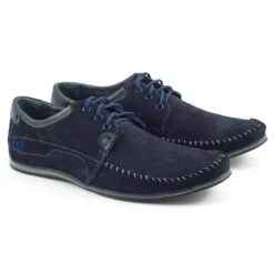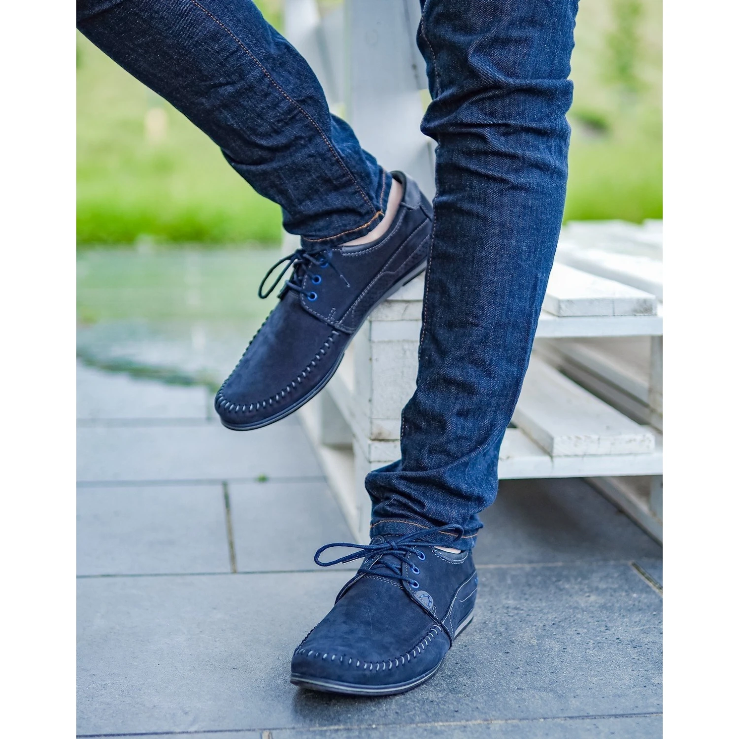 Les mocassins lisses bleu marine de Komodo sont des chaussures confortables pour l’été. Les chaussures entièrement en cuir naturel sont légères. Ils fonctionneront bien dans les stylisations décontractées. Des lacets bleus et un bout avec un fil brillant ajoutent un peu de style. Ils se marient bien avec un jean, un pantalon élégant et un short.