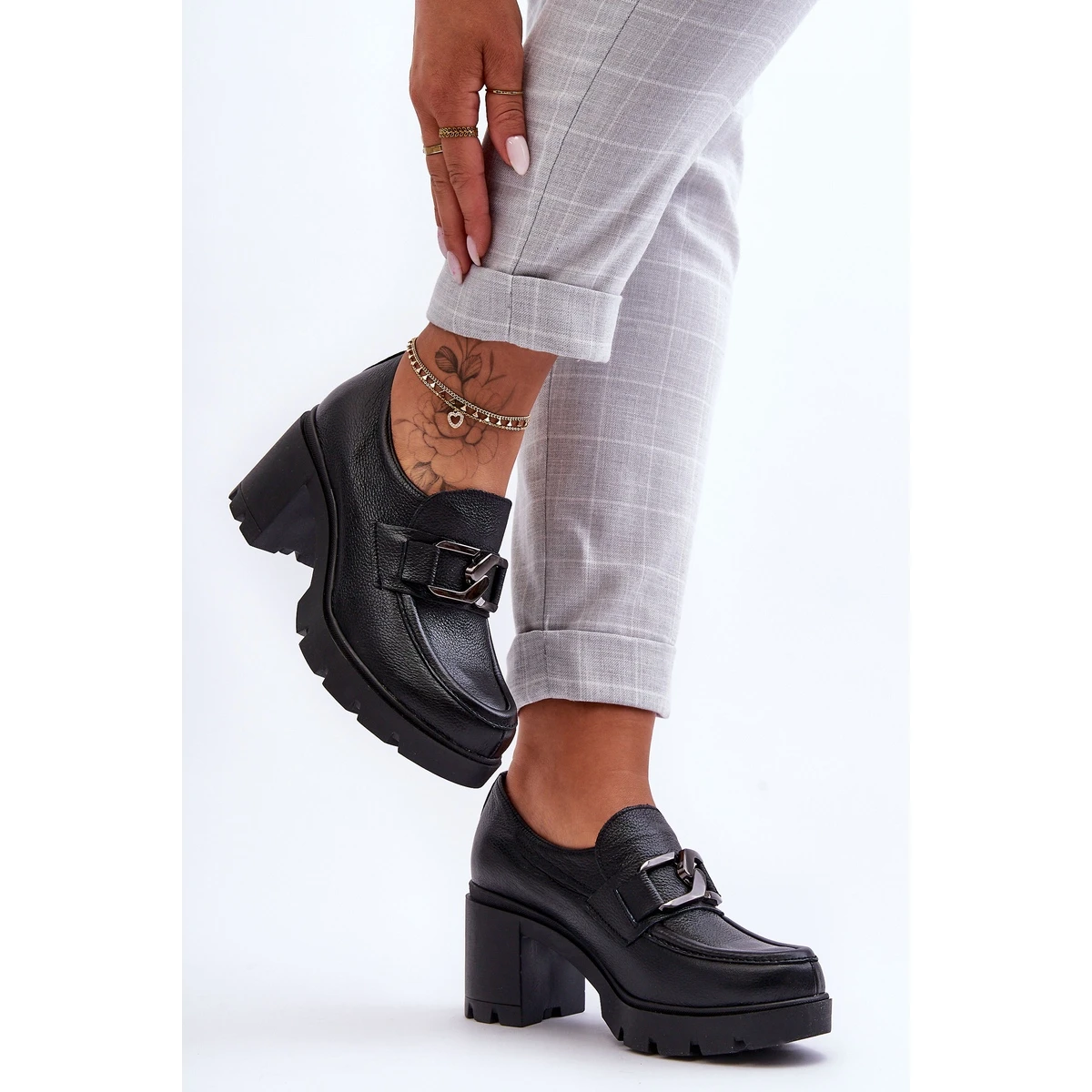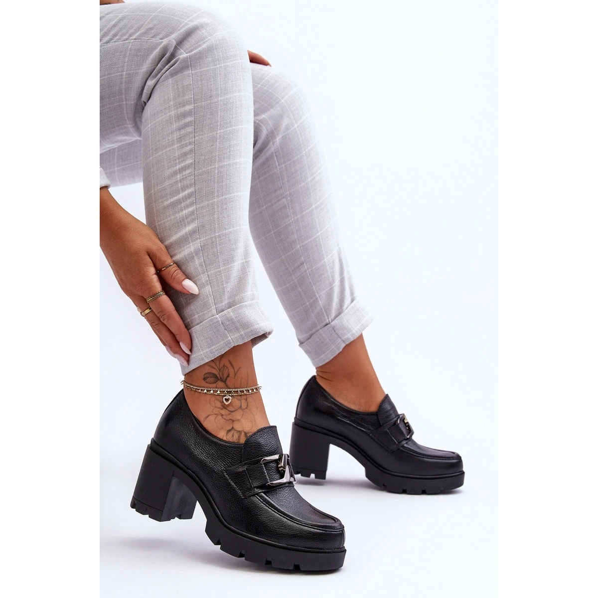 Magnifiques chaussures à talons hauts avec une tige en cuir naturel. L’intérieur est recouvert de cuir naturel et de matière textile, ce qui les rend très confortables à utiliser. La semelle intérieure est en cuir naturel et la semelle en caoutchouc. Un talon élégant en forme de tige large assurera la stabilité à chaque pas. Ornement miroir sur le devant. Le contrefort de talon est rigidifié. De plus, il y a une bande élastique sous la languette, ce qui rendra la chaussure parfaitement ajustée au pied. Lorsque vous choisissez une taille, veuillez utiliser le tableau des tailles.