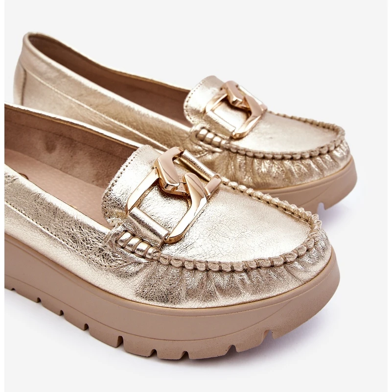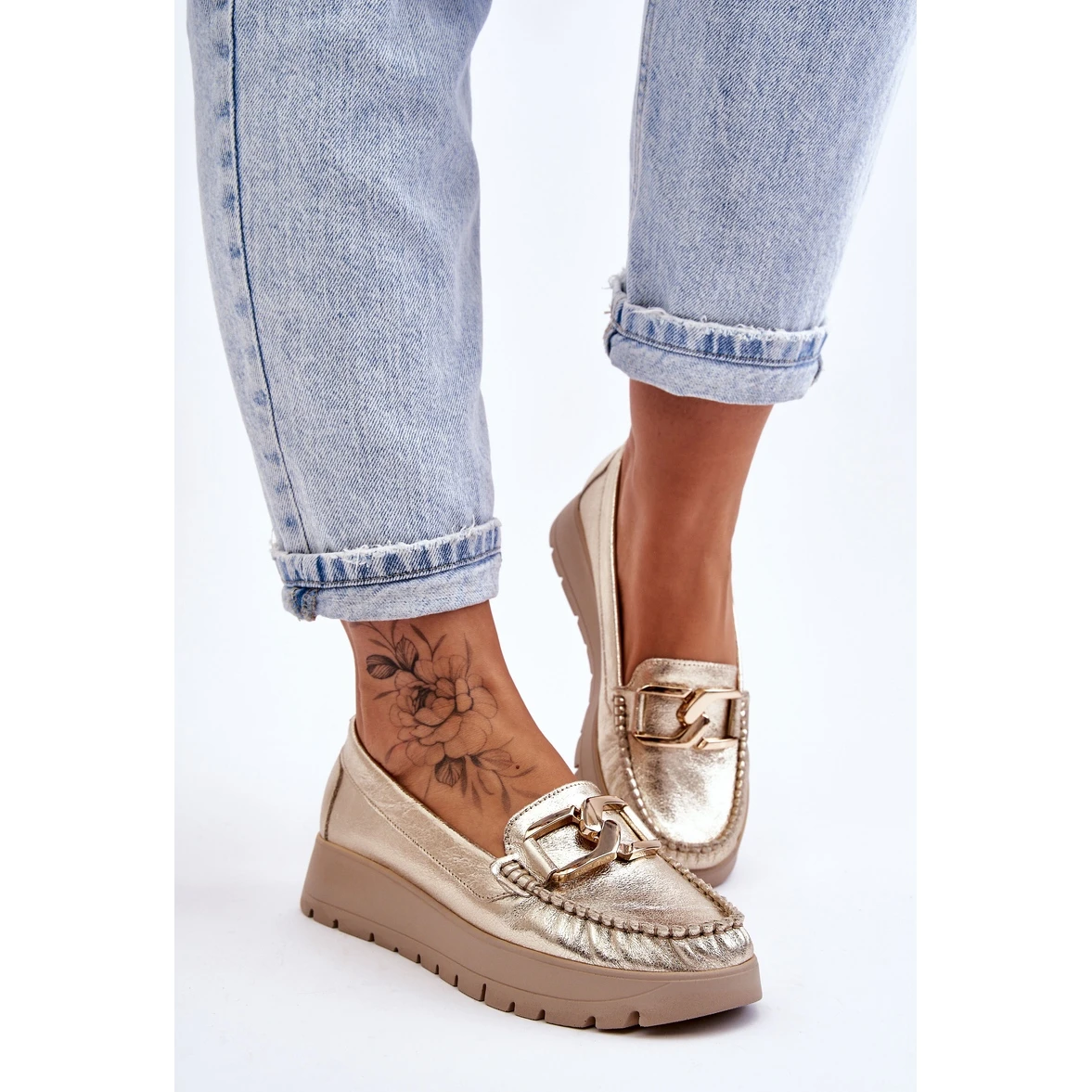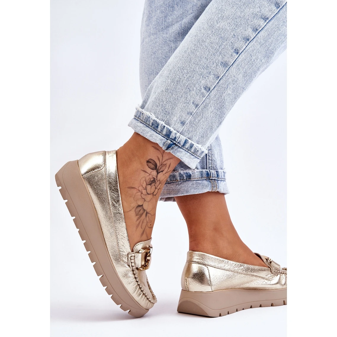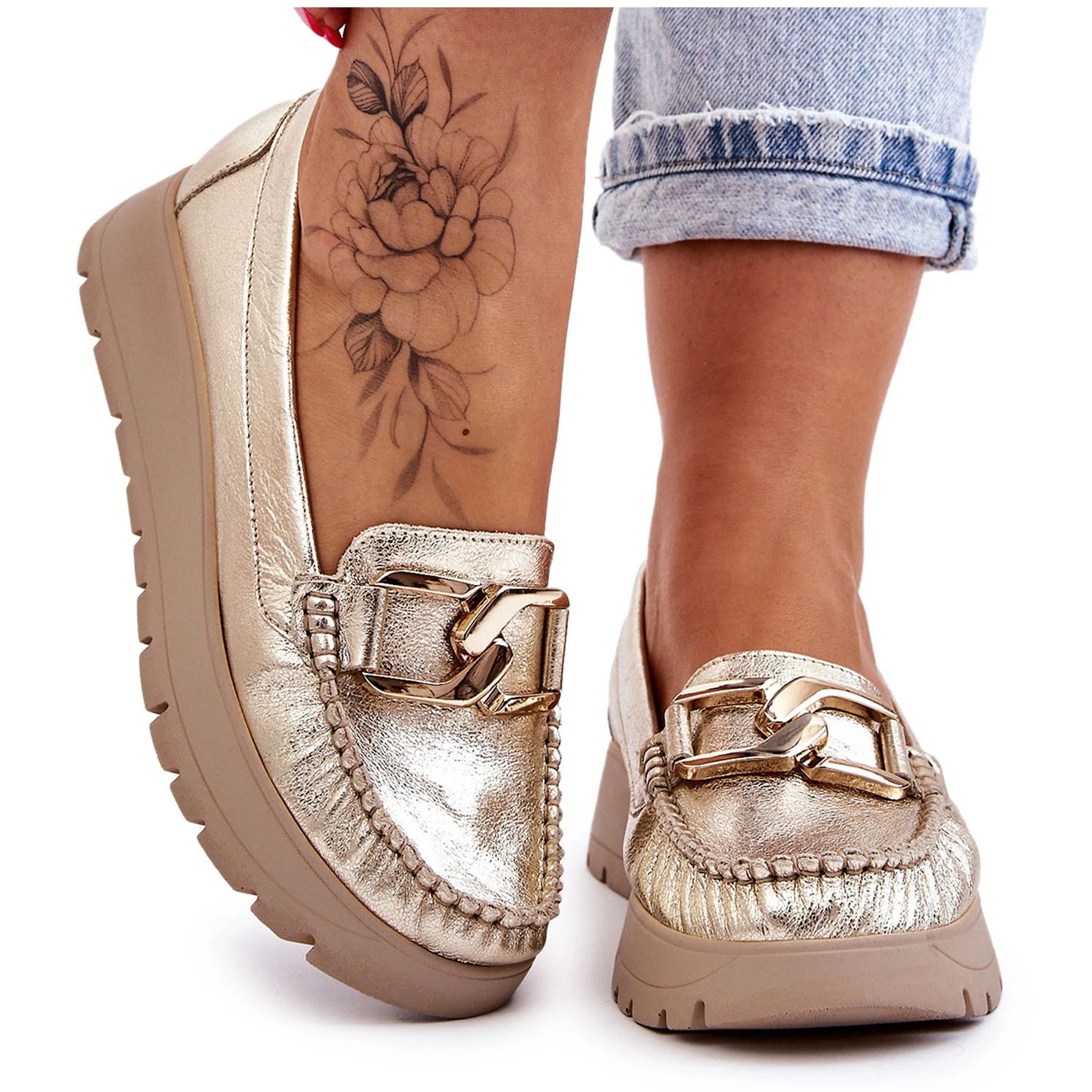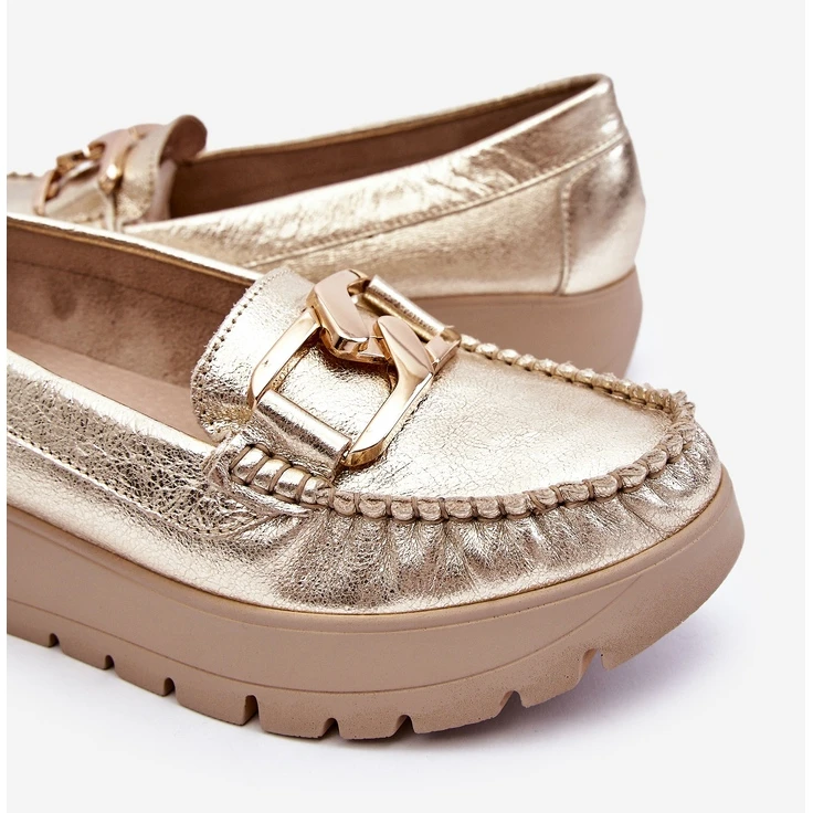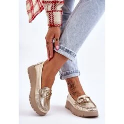 Les mocassins pour femmes sont fabriqués en cuir naturel avec une attention aux détails. Ils ont une décoration sur le devant. Le contrefort de talon de ces chaussures a été renforcé, ce qui permettra une bonne stabilisation du pied. Les mocassins sont fixés sur un coin et une plate-forme délicats. Vérifiez également les autres modèles disponibles sur notre site Web! Lorsque vous choisissez une taille, veuillez utiliser le tableau des tailles.