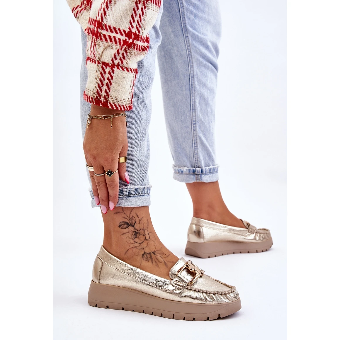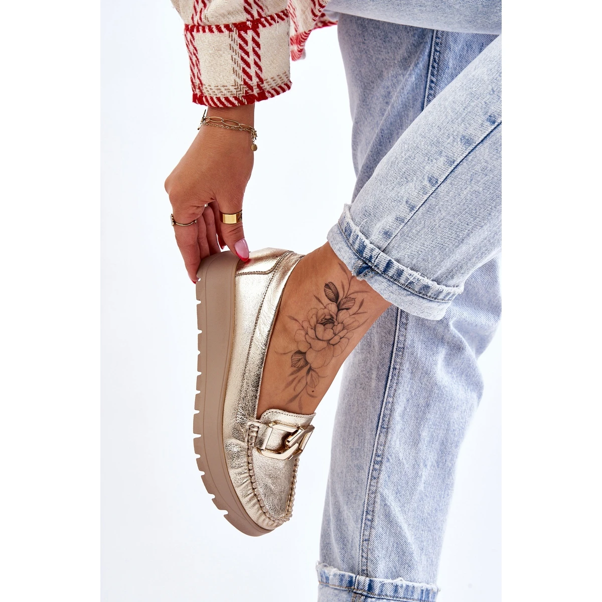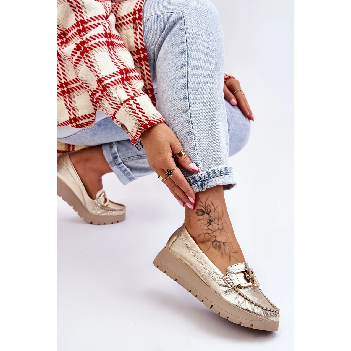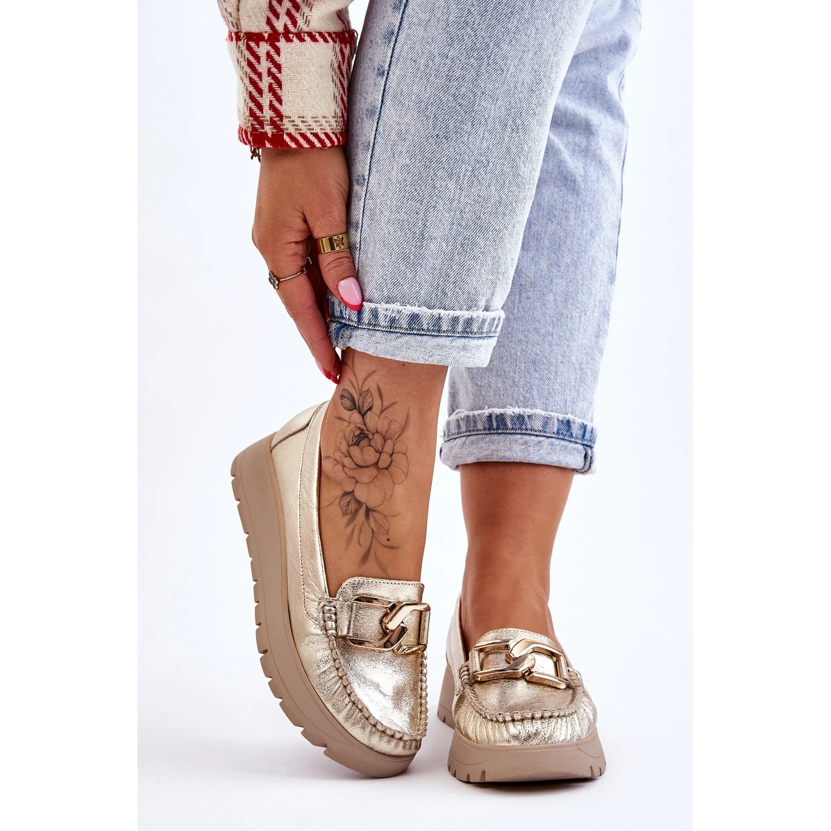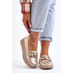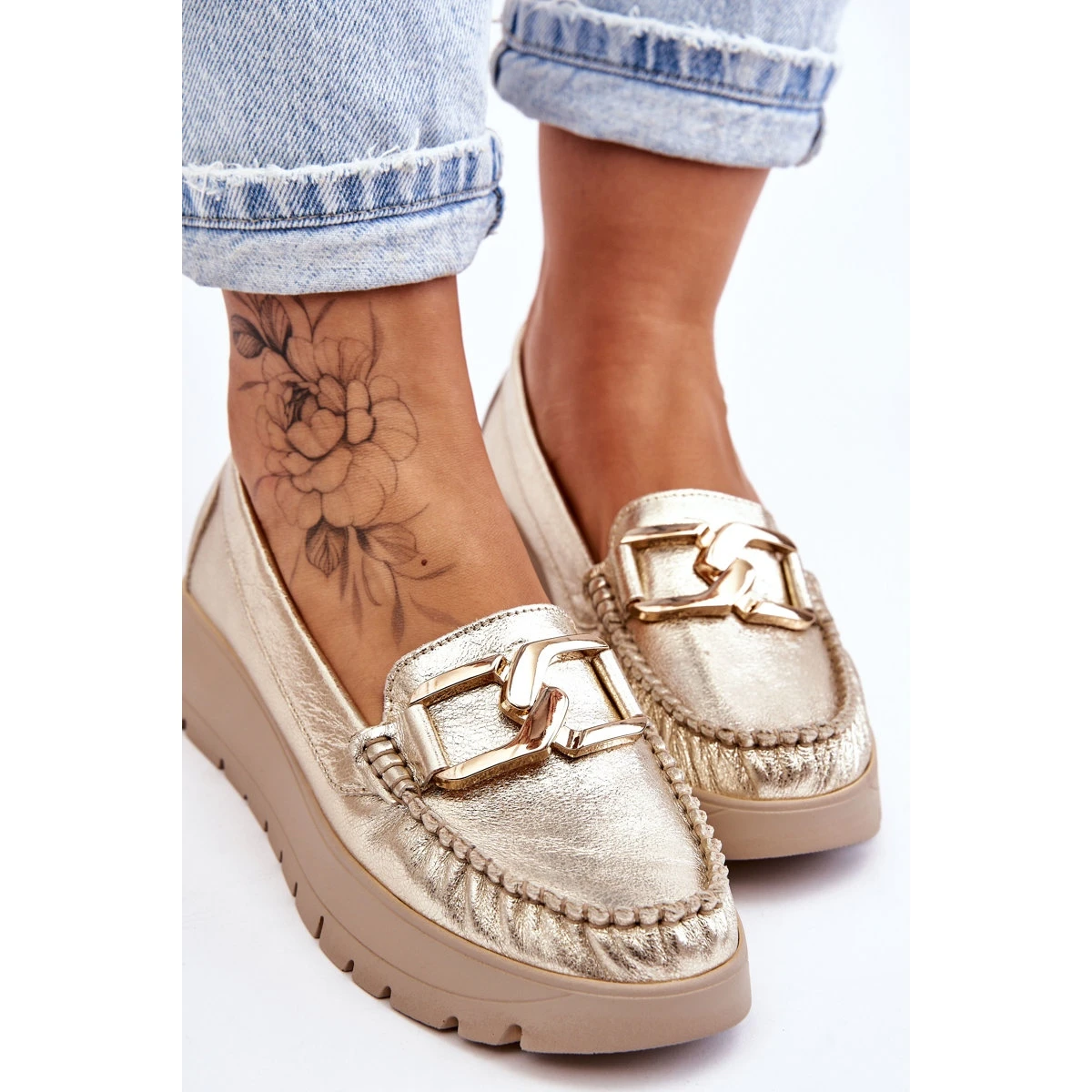 Les mocassins pour femmes sont fabriqués en cuir naturel avec une attention aux détails. Ils ont une décoration sur le devant. Le contrefort de talon de ces chaussures a été renforcé, ce qui permettra une bonne stabilisation du pied. Les mocassins sont fixés sur un coin et une plate-forme délicats. Vérifiez également les autres modèles disponibles sur notre site Web! Lorsque vous choisissez une taille, veuillez utiliser le tableau des tailles.