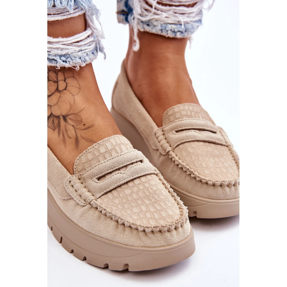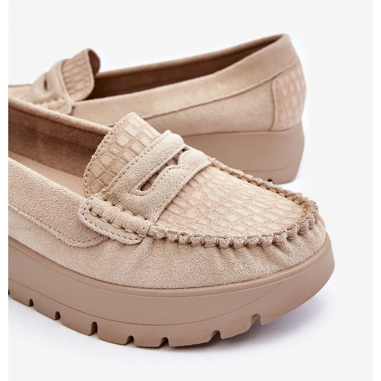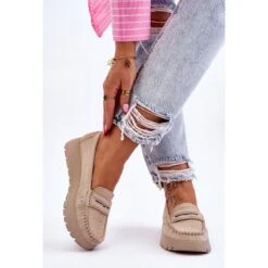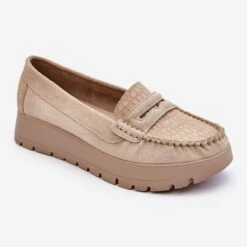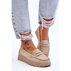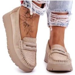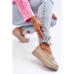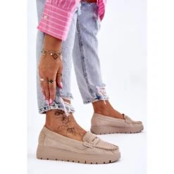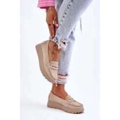 Mocassins pour femme en cuir naturel avec une bande décorative sur le devant. Le contrefort de talon a été rigidifié, ce qui permettra une bonne stabilisation du pied. Les chaussures ont été placées sur la plate-forme. Ce modèle a une semelle intérieure souple avec perforation. Les mocassins sont les chaussures parfaites pour de nombreux styles ! Vous devriez absolument les avoir! Lorsque vous choisissez une taille, veuillez utiliser le tableau des tailles.