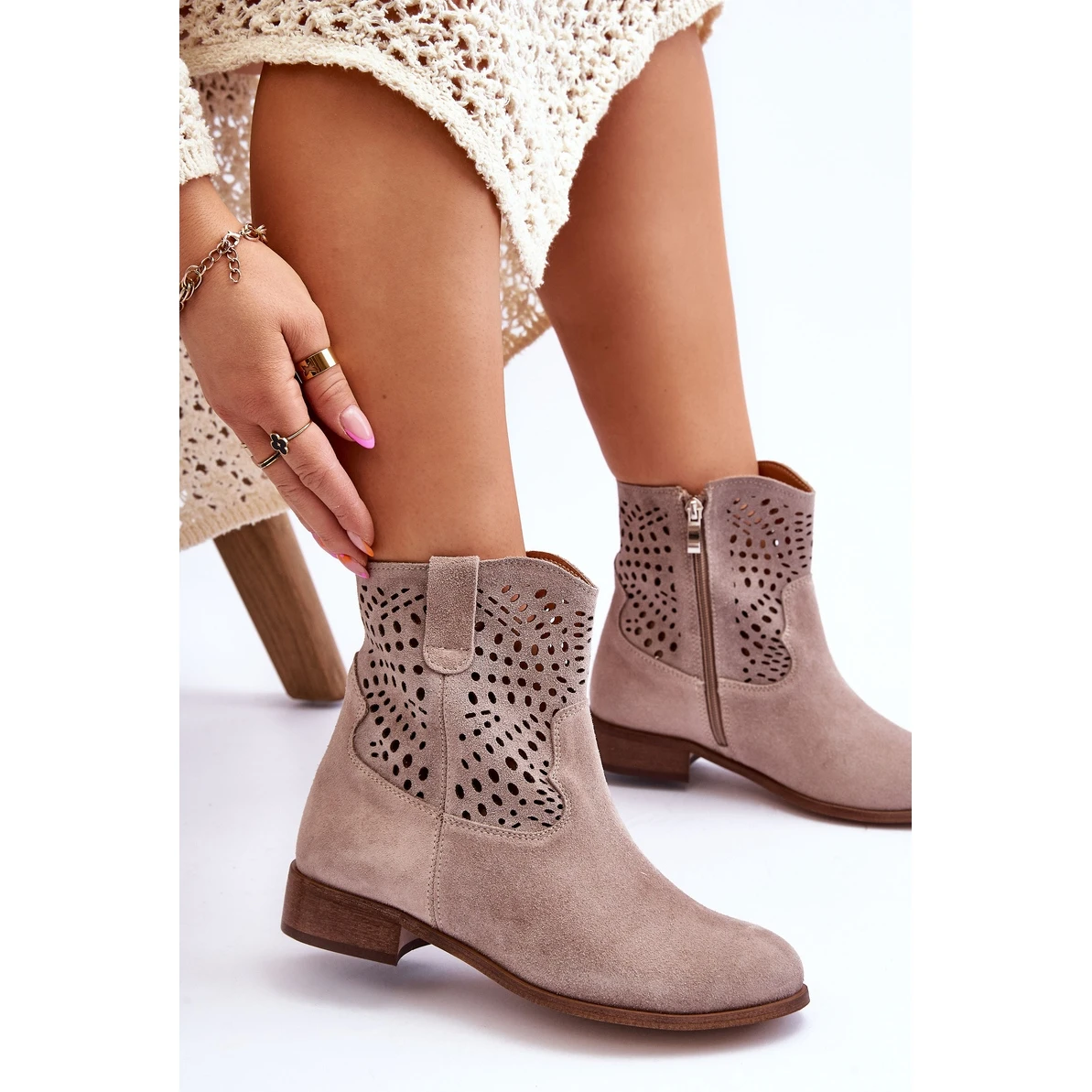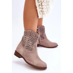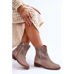 Les bottes pour femmes à la mode sont en cuir naturel de haute qualité avec un motif ajouré. Dessus à glissière latérale. De plus, les bottes ont un contrefort de talon renforcé et une semelle intérieure souple. Ces chaussures sont extrêmement confortables et confortables à utiliser. Montées sur un talon plat, ce qui les rend extrêmement stables. Lorsque vous choisissez une taille, veuillez utiliser le tableau des tailles.