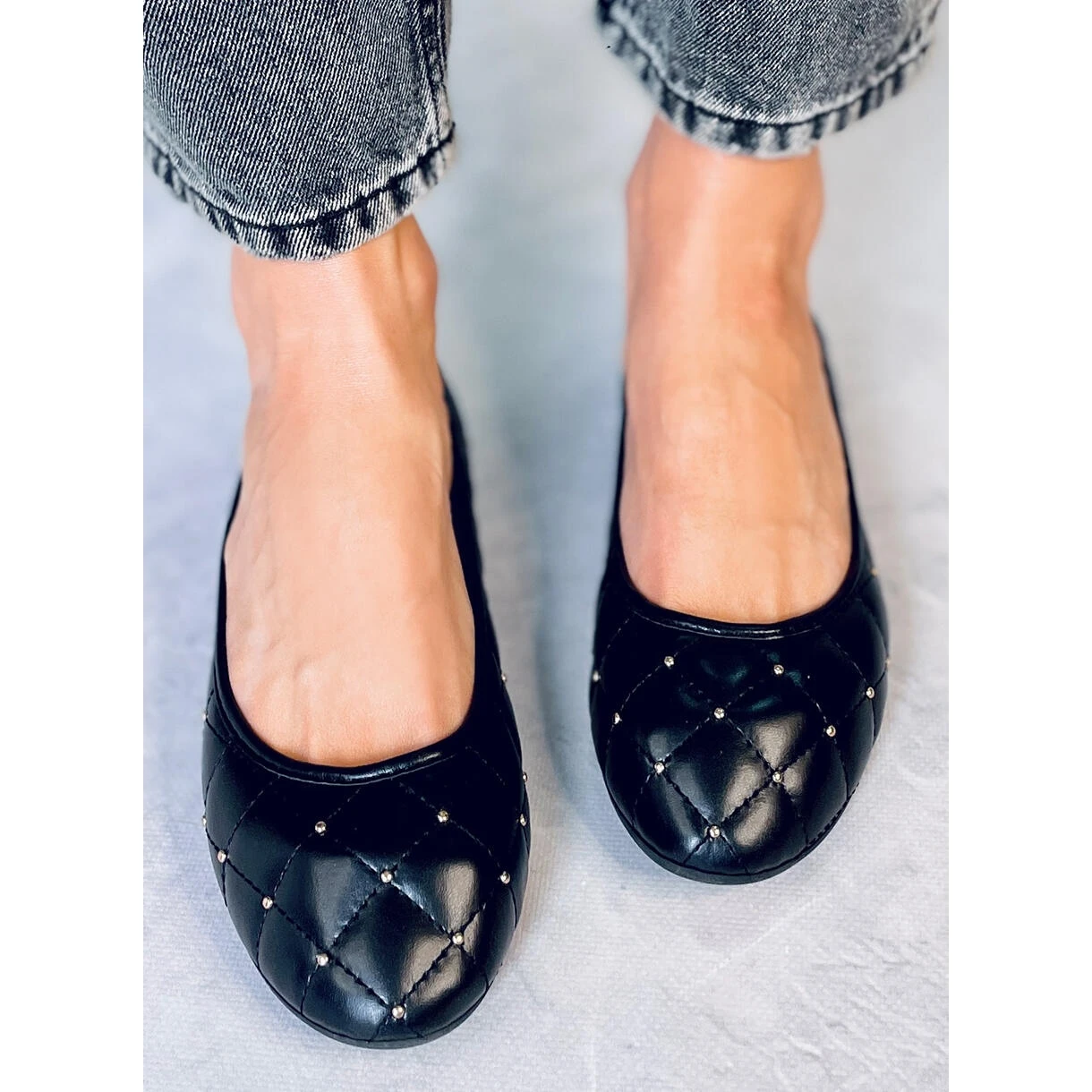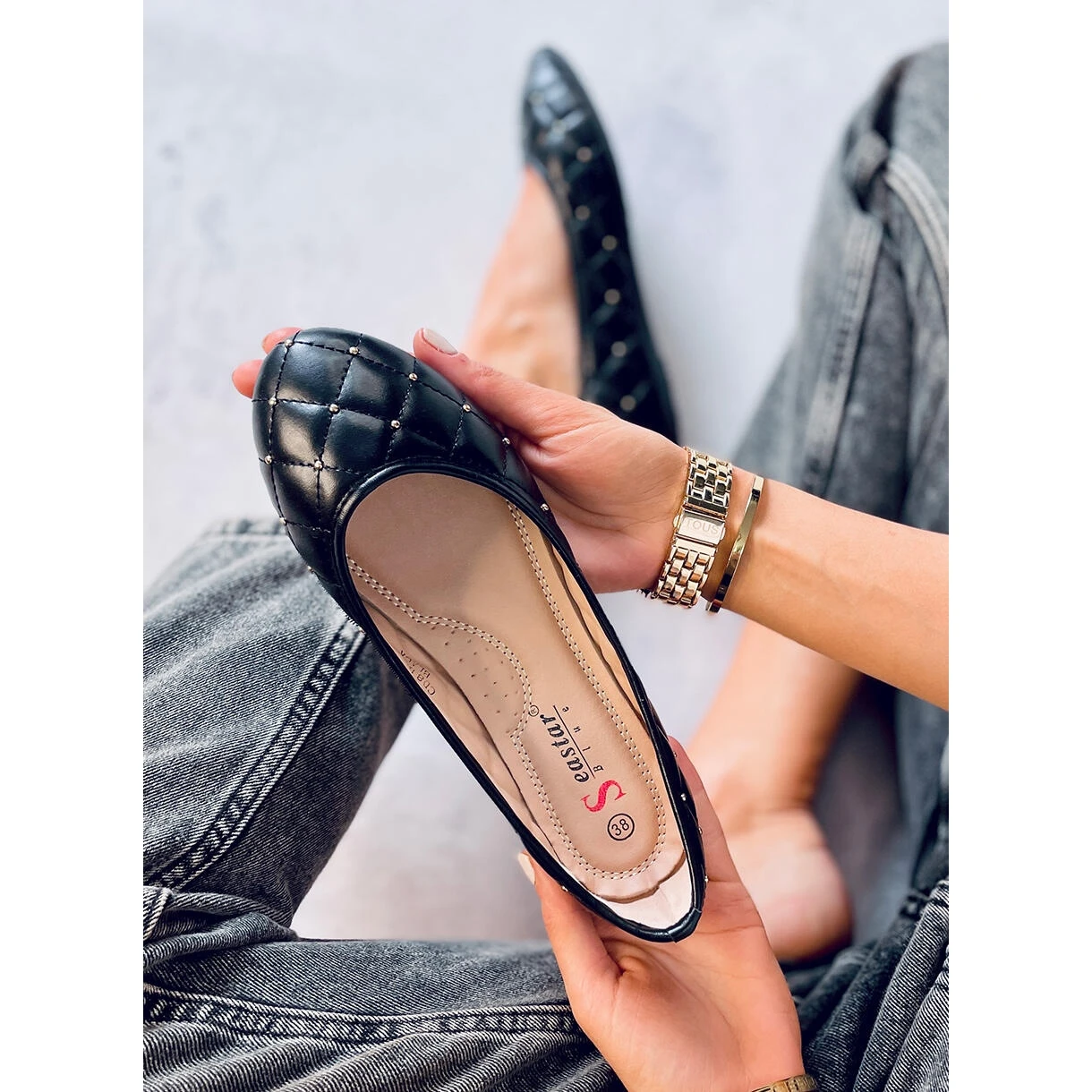 Ballerines faciales pour femmes. Un beau motif matelassĂ© avec des accessoires dorĂ©s volera sĂ»rement vos cĹ“urs… Ils ont une coupe galbĂ©e et des nez dĂ©licatement arrondis. Une doublure intĂ©rieure très douce avec un oreiller est une garantie de confort 🙂 MatĂ©riau extĂ©rieur – cuir artificiel.