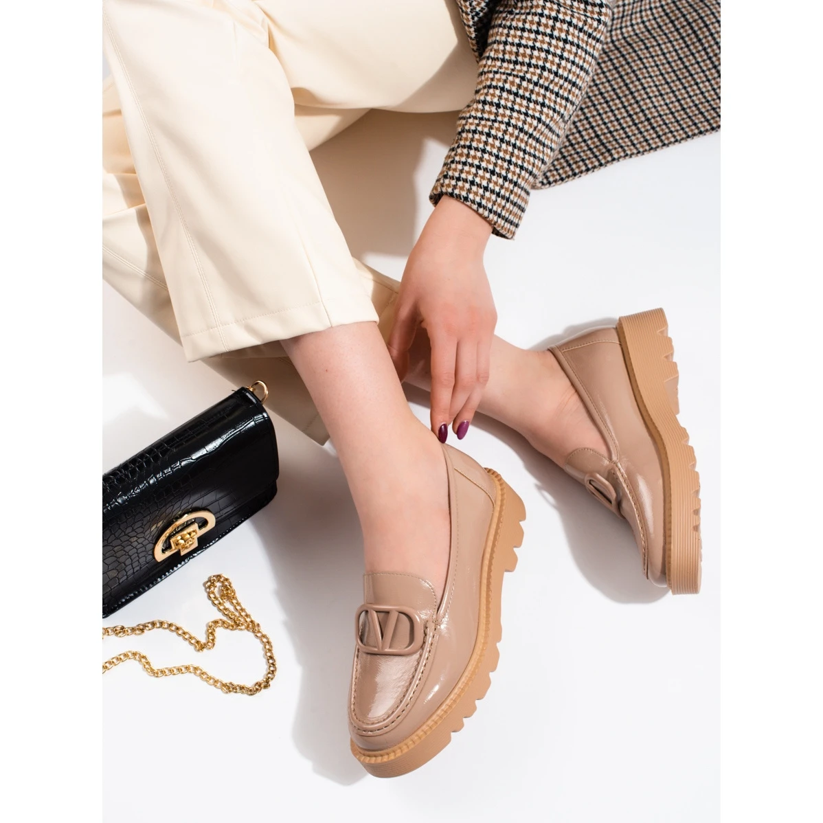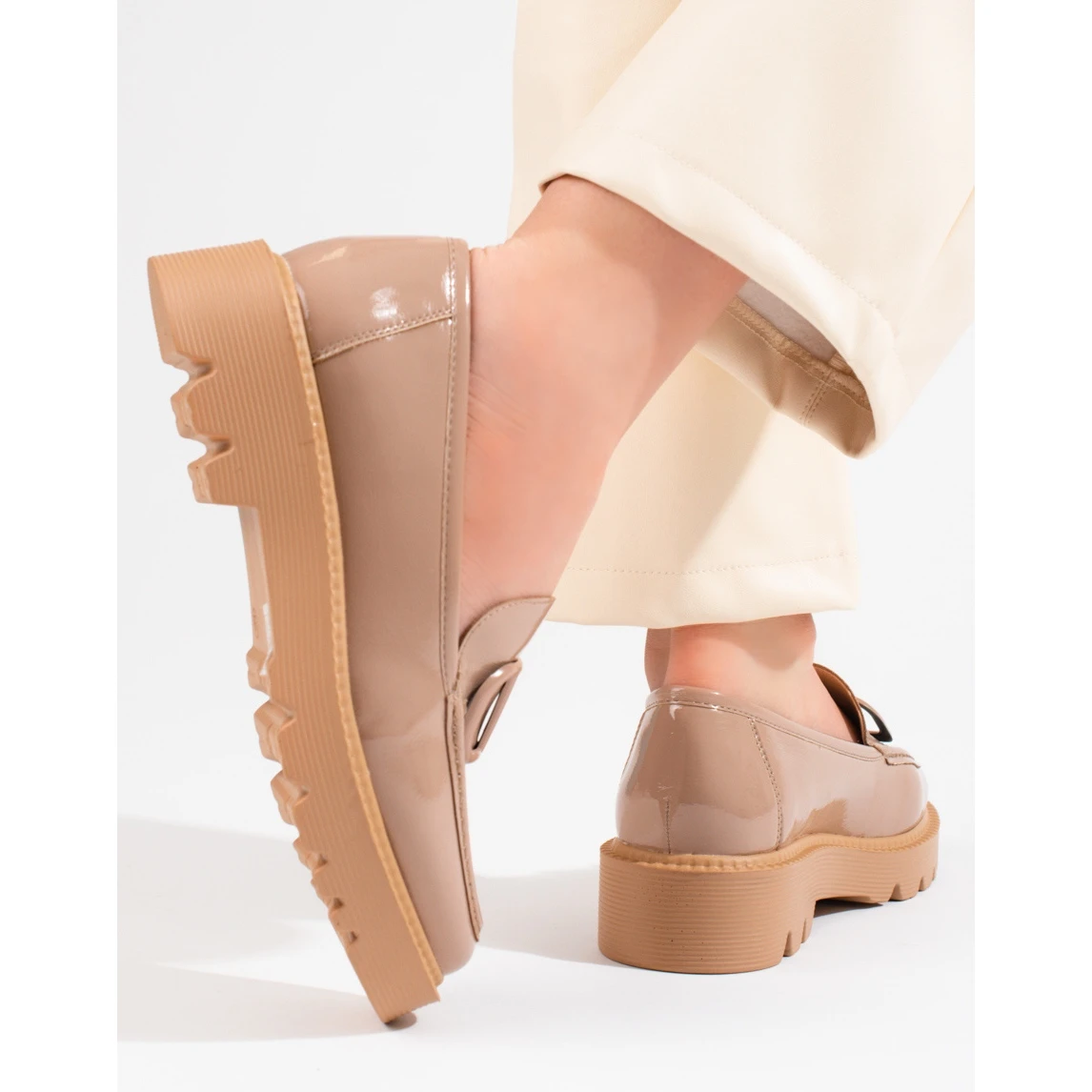 - Modèle: Mocassins beiges sur plateforme épaisse