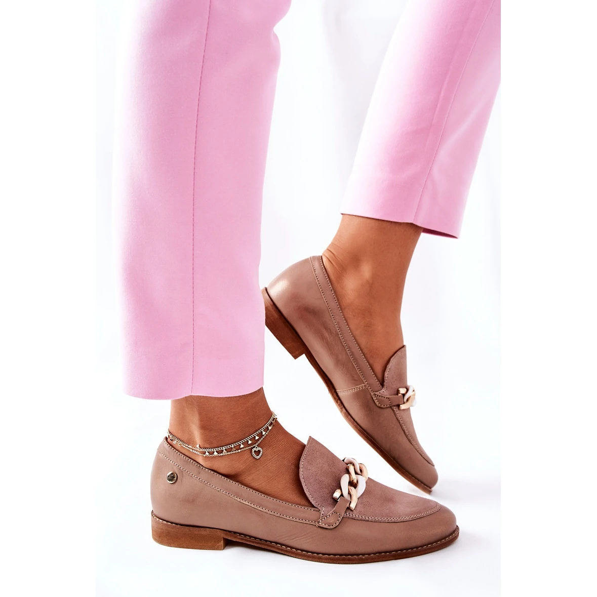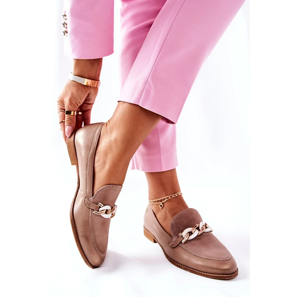 Des chaussures classiques avec une chaîne décorative souligneront toutes nos stylisations. La couleur intemporelle va avec tout. Le motif unique ajoute du style à l’ensemble. Le dessus et la semelle intérieure sont entièrement en cuir naturel. Un talon plat soulignera notre style élégant. Lorsque vous choisissez une taille, veuillez suivre le tableau des tailles, qui est disponible en survolant ou en cliquant sur une taille donnée.