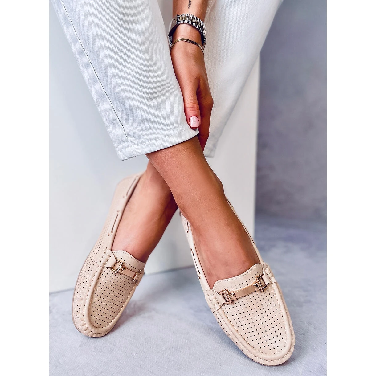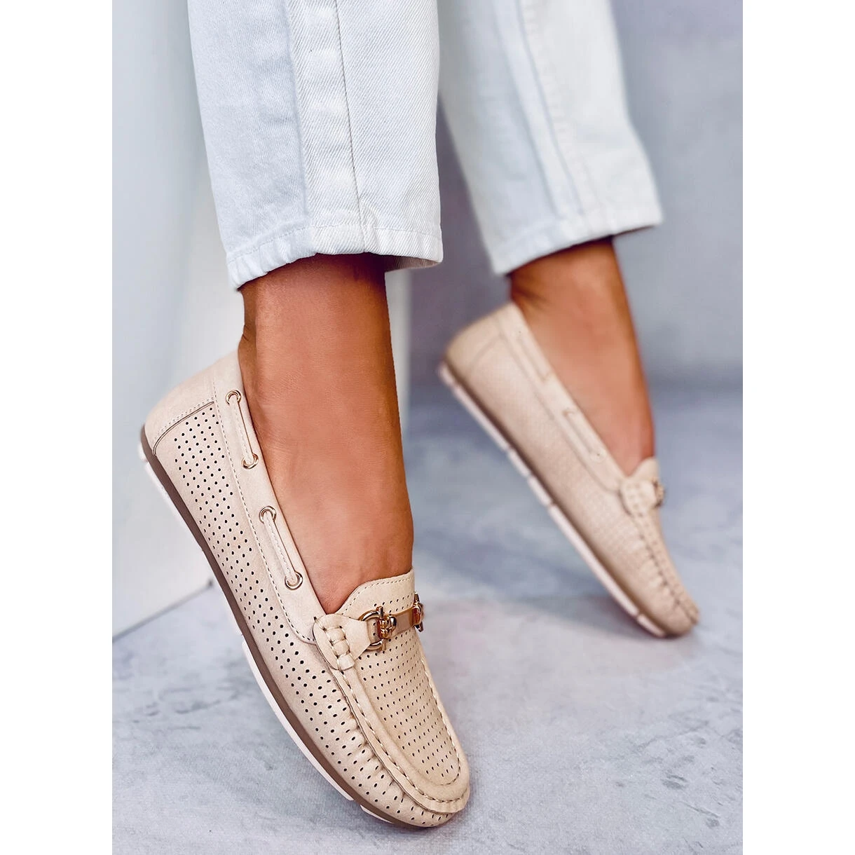 Mocassins femme ajourĂ©s. Ce modèle intemporel a un design soignĂ© avec des coutures subtiles et un ornement dorĂ© Ă©lĂ©gant. Le confort au quotidien est assurĂ© par une doublure intĂ©rieure moelleuse avec un oreiller. Ils vous attendent 🙂 MatĂ©riau extĂ©rieur – cuir artificiel.