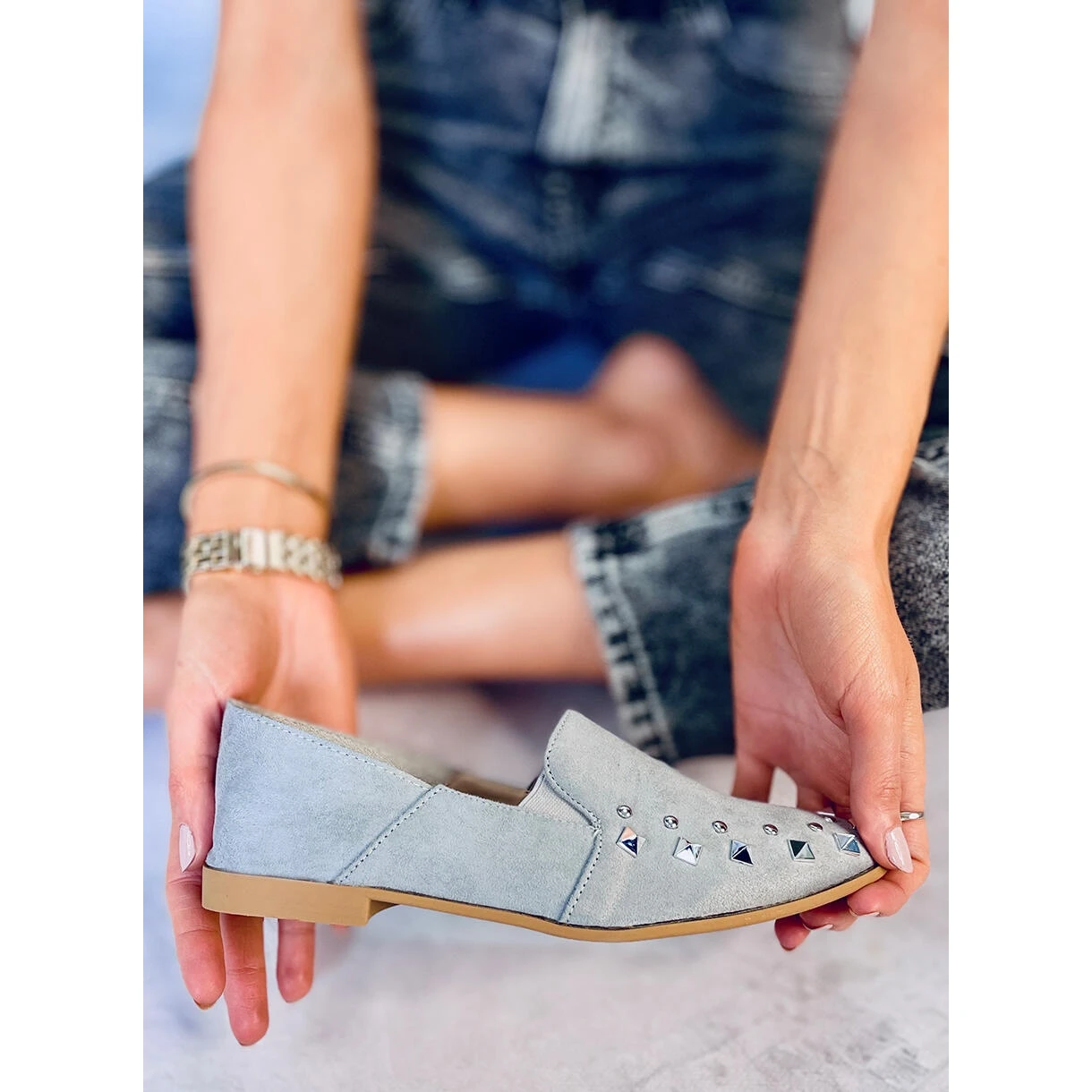 Mocassins originaux – seigneurs pour femmes en daim Ă©cologique. Les clous et les jets leur donnent un caractère unique. C’est une excellente proposition pour les personnes qui apprĂ©cient le confort et le style. La doublure intĂ©rieure est en cuir Ă©cologique. Nous vous suggĂ©rons de choisir la taille des fesses – sans aucune rĂ©serve, car les chaussures sont très douces et doivent ĂŞtre tendues sur le pied.