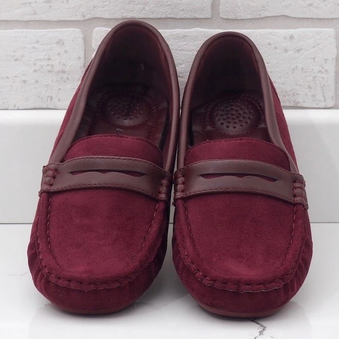 Ballerines marron élégantes pour les occasions spéciales. Les chaussures sont en éco-suède et éco-cuir. Les chaussures sont très confortables pour un usage quotidien.