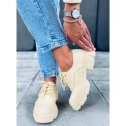 Mocassins femme à lacets. L’association d’un design classique et de la semelle haute (4 cm) la plus en vogue est du meilleur effet ! Nous aimons ces solutions 🙂 Elles sont faites de cuir écologique très délicat.