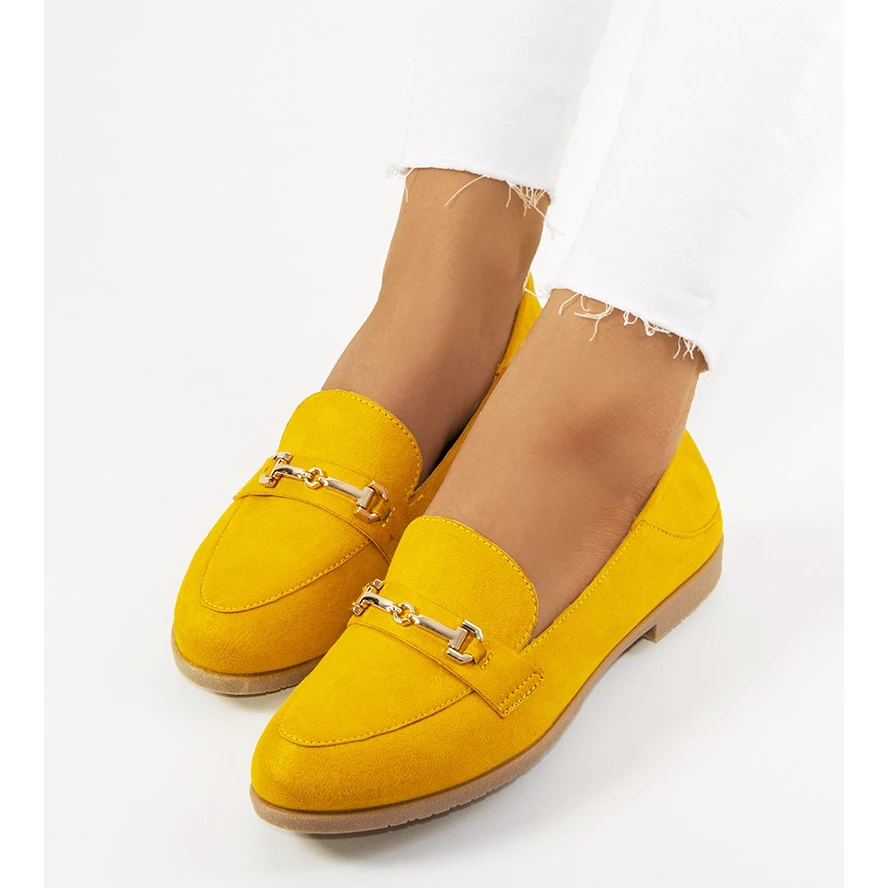 Les mocassins Aniria complètent avec style la stylisation, par exemple pour le travail. Les chaussures sont en cuir suédé écologique, le talon n’a pas de raidissement en cuir écologique, ce qui le rend doux et adhère agréablement au pied. La tige au-dessus de la pointe est ornée d’une élégante boucle dorée. Numérotation sous-dimensionnée, nous vous suggérons de choisir une taille plus grande.