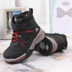 Les chaussures pour garçons à la mode sont la dernière offre de News. Les chaussures se caractérisent par la qualité de fabrication et le confort d’utilisation. La doublure et la semelle intérieure sont isolées avec de la laine de mouton chaude et agréable au toucher. Les chaussures ajouteront de l’éclat au style boyish!
