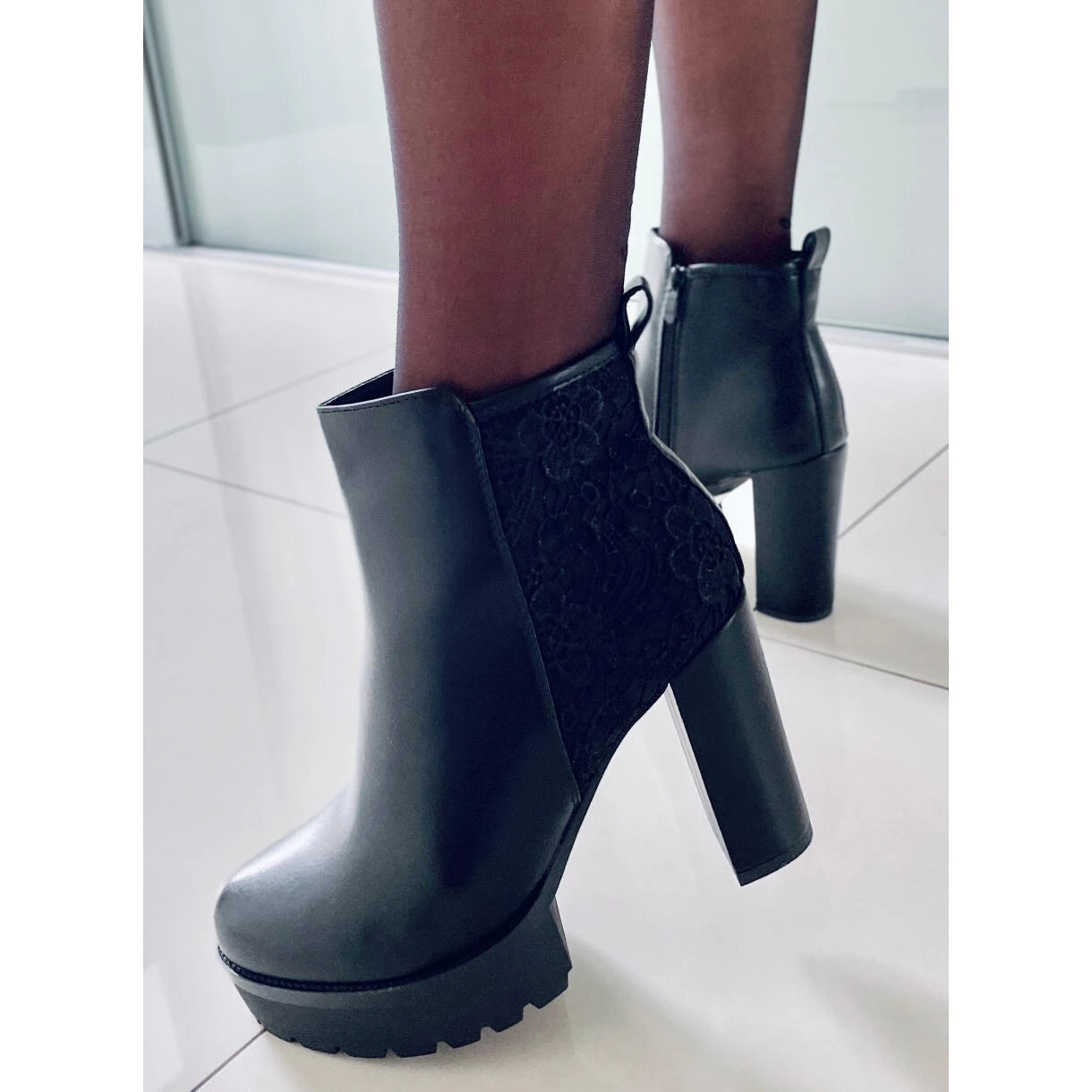 Bottines en grain pour femmes Ă talons hauts. Un poteau stable d’une hauteur de 11 cm et une plate-forme Ă la mode – 3 cm assurent des jambes incroyablement longues ! Le bel empiècement en dentelle empĂŞche de les quitter des yeux 🙂 Le modèle a une fermeture Ă©clair pratique Ă l’intĂ©rieur, ce qui le rend facile Ă enfiler. Ils sont en cuir Ă©cologique et l’intĂ©rieur est doublĂ© de fourrure dĂ©licate.