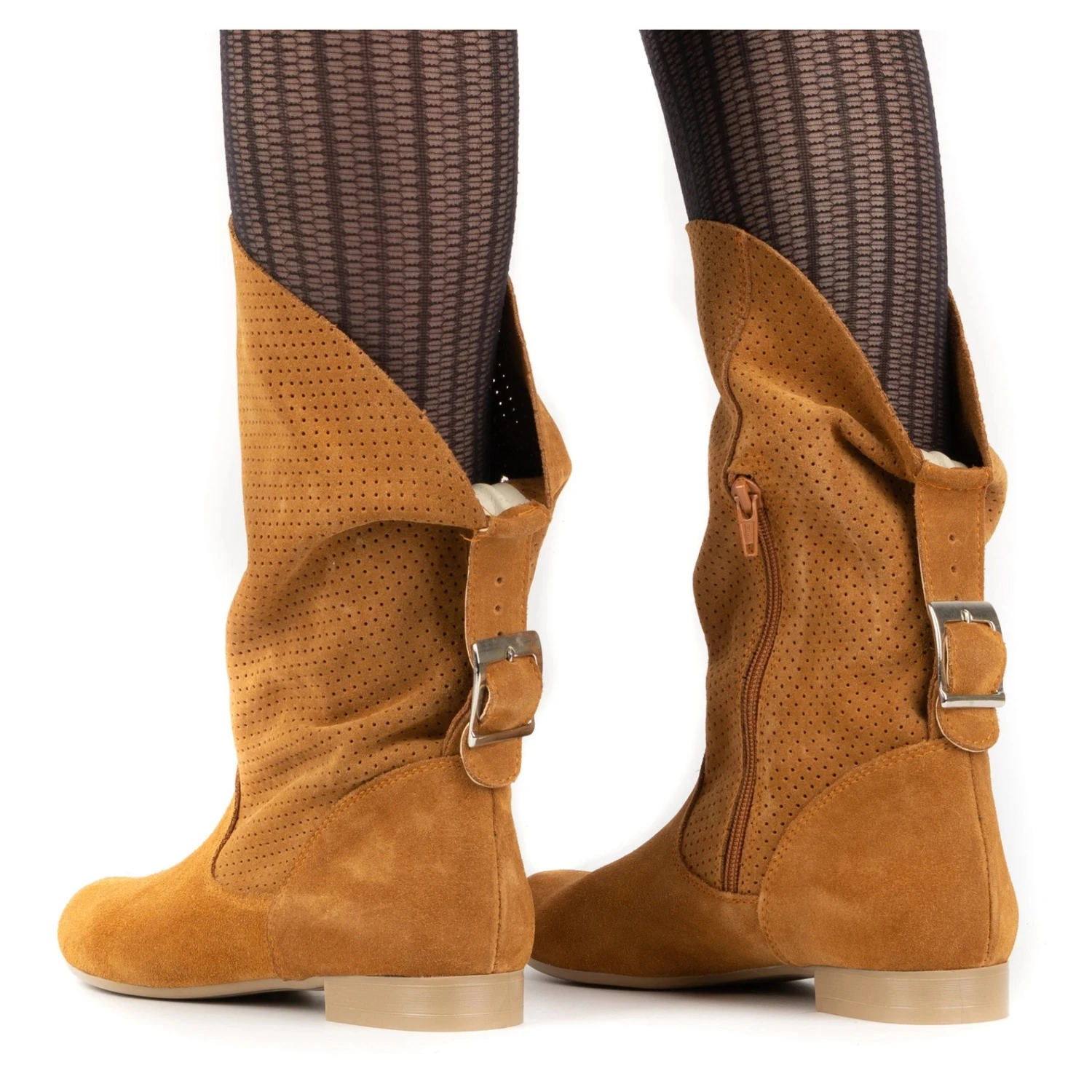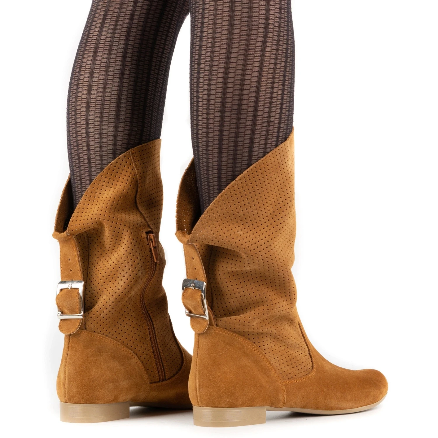 Vous avez besoin de chaussures confortables, universelles et simplement de bonne qualité pour le printemps et l’automne ? Les bottes ajourées Elena sont un excellent choix. À l’intérieur, ils sont en cuir naturel, tandis qu’à l’extérieur, ils sont en nubuck naturel. Les chaussures pour femmes sont complétées par l’ajout d’une boucle et d’une fermeture à glissière, qui non seulement ont fière allure, mais sont également confortables à utiliser. La longueur mi-mollet est très universelle. Vous pouvez les choisir à la fois avec des pantalons étroits et des robes. Les bottes ajourées ont une tige avec un motif de perforation délicat. Par conséquent, il garantit une circulation d’air adéquate, offrant un confort d’air quelle que soit la température extérieure. Les bottes ajourées sont des chaussures pour femmes à l’italienne, mais une entreprise polonaise est à l’origine de la qualité de leur fabrication. Une bonne peau s’adapte mieux au pied, donc le pied dans la chaussure ne transpire pas, et il n’y a pas non plus de risque de cors. La semelle brillante contraste de manière intéressante avec les nombreuses couleurs de la tige, créant une composition à la mode qui peut être combinée avec différentes nuances de pantalons et de robes.