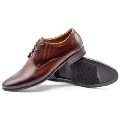 Les chaussures formelles très élégantes, stylées et en même temps vraiment intemporelles sont un élément indispensable de la garde-robe masculine. Les chaussures pour hommes sont entièrement en cuir naturel d’excellente qualité. Grâce à cela, ils ont non seulement fière allure à l’extérieur, mais offrent également un grand confort de port, permettant aux pieds de respirer. Ce matériau s’adapte également parfaitement au pied. Les chaussures formelles sont un modèle très classique, parfaites en complément d’un costume, mais aussi dans des styles moins formels, par exemple en combinaison avec un jean. Les chaussures formelles sont une production 100% polonaise d’excellente qualité. Ils sont couverts par une garantie de deux ans, ce qui garantit leur utilisation pendant très longtemps. Les chaussures en cuir pour hommes ont un petit talon, ce qui affecte positivement le confort de port et améliore également leur apparence.