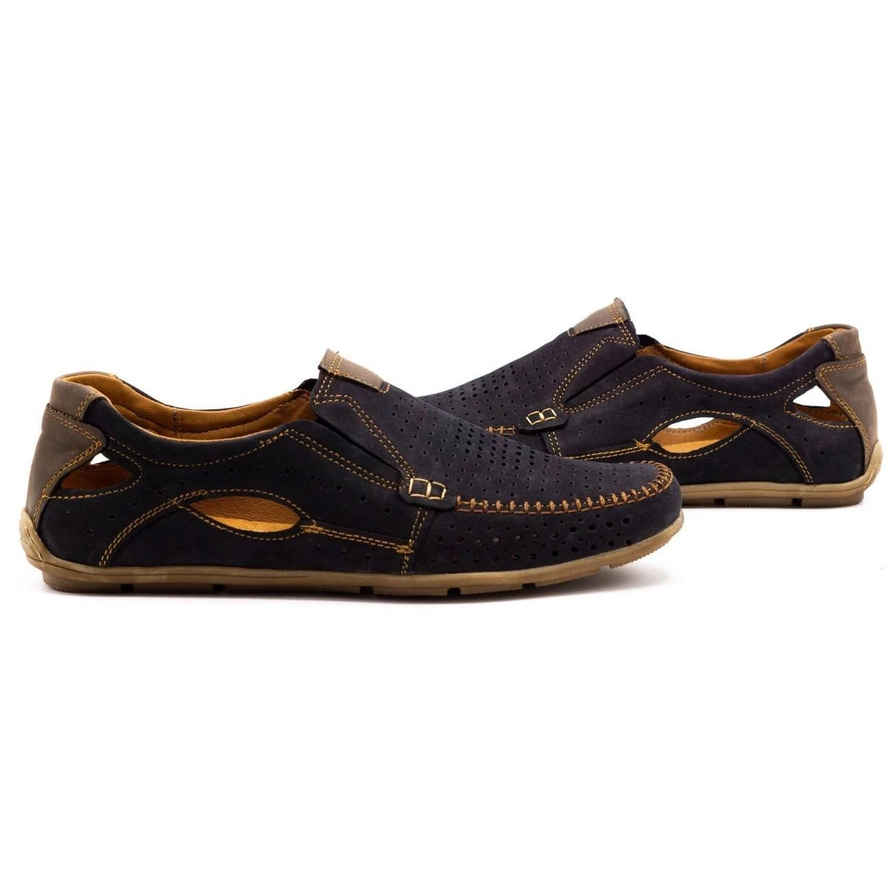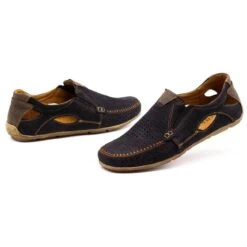 Les mocassins en cuir pour hommes sont des chaussures sans lesquelles il est difficile d’imaginer la stylisation d’un homme à la mode pendant la période la plus chaude de l’année. Ils se marient bien avec des pantalons plus légers, comme ceux en lin. Comme ils sont le plus souvent portés directement pieds nus, il est important de faire attention à la qualité de fabrication. Les mocassins pour hommes présentés sont entièrement en cuir. Le matériau extérieur est en cuir naturel, tandis que l’intérieur a également une semelle intérieure en cuir. Grâce à cela, les chaussures assurent une circulation d’air parfaite et empêchent les pieds de transpirer même à des températures extérieures élevées.