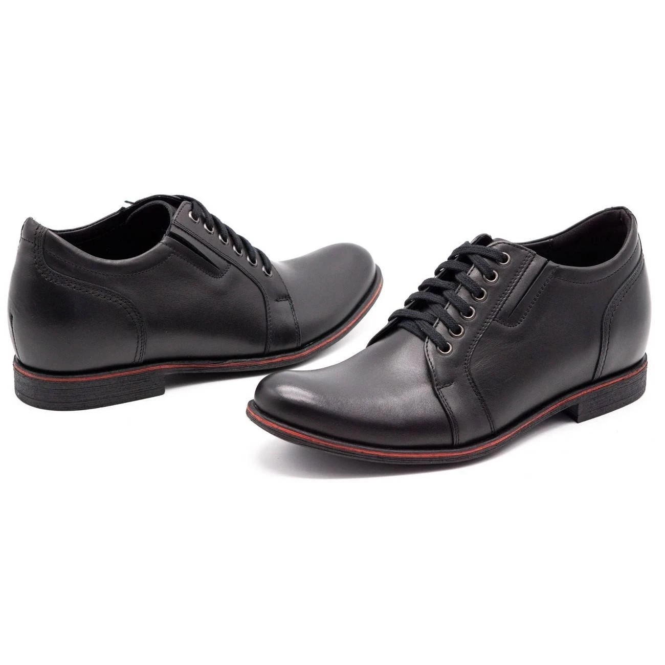 Ces chaussures habillées noires croissantes pour hommes sont entièrement en cuir naturel. Ils ont un talon intégré d’environ 3 cm. Ils sont très confortables et élégants. Une coupe simple, un laçage traditionnel et un bout allongé ajoutent du style, et en combinaison avec un costume classique, ils créent le duo parfait.