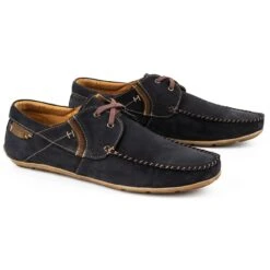 Les mocassins en cuir pour hommes sont des chaussures sans lesquelles il est difficile d’imaginer la stylisation d’un homme à la mode pendant la période la plus chaude de l’année. Ils se marient bien avec des pantalons plus légers, comme ceux en lin. Comme ils sont le plus souvent portés directement pieds nus, il est important de faire attention à la qualité de fabrication. Les mocassins pour hommes présentés sont entièrement en cuir. Le matériau extérieur est en cuir naturel, tandis que l’intérieur a également une semelle intérieure en cuir. Grâce à cela, les chaussures assurent une circulation d’air parfaite et empêchent les pieds de transpirer même à des températures extérieures élevées.