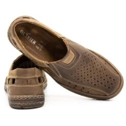 Les mocassins en cuir pour hommes sont des chaussures sans lesquelles il est difficile d’imaginer la stylisation d’un homme à la mode pendant la période la plus chaude de l’année. Ils se marient bien avec des pantalons plus légers, comme ceux en lin. Comme ils sont le plus souvent portés directement pieds nus, il est important de faire attention à la qualité de fabrication. Les mocassins pour hommes présentés sont entièrement en cuir. Le matériau extérieur est en cuir naturel, tandis que l’intérieur a également une semelle intérieure en cuir. Grâce à cela, les chaussures assurent une circulation d’air parfaite et empêchent les pieds de transpirer même à des températures extérieures élevées.