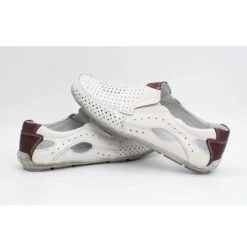 Les mocassins en cuir pour hommes sont des chaussures sans lesquelles il est difficile d’imaginer la stylisation d’un homme à la mode pendant la période la plus chaude de l’année. Ils se marient bien avec des pantalons plus légers, comme ceux en lin. Comme ils sont le plus souvent portés directement pieds nus, il est important de faire attention à la qualité de fabrication. Les mocassins pour hommes présentés sont entièrement en cuir. Le matériau extérieur est en cuir naturel, tandis que l’intérieur a également une semelle intérieure en cuir. Grâce à cela, les chaussures assurent une circulation d’air parfaite et empêchent les pieds de transpirer même à des températures extérieures élevées.