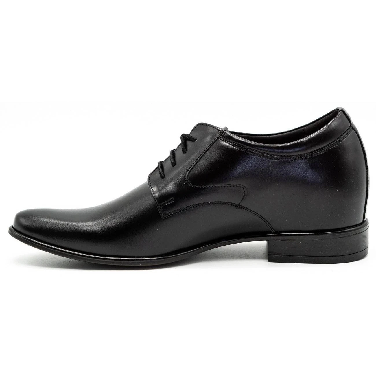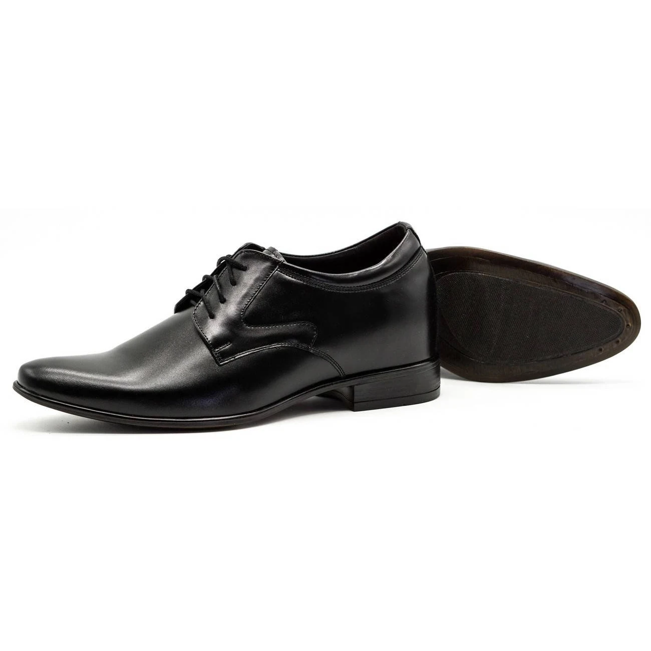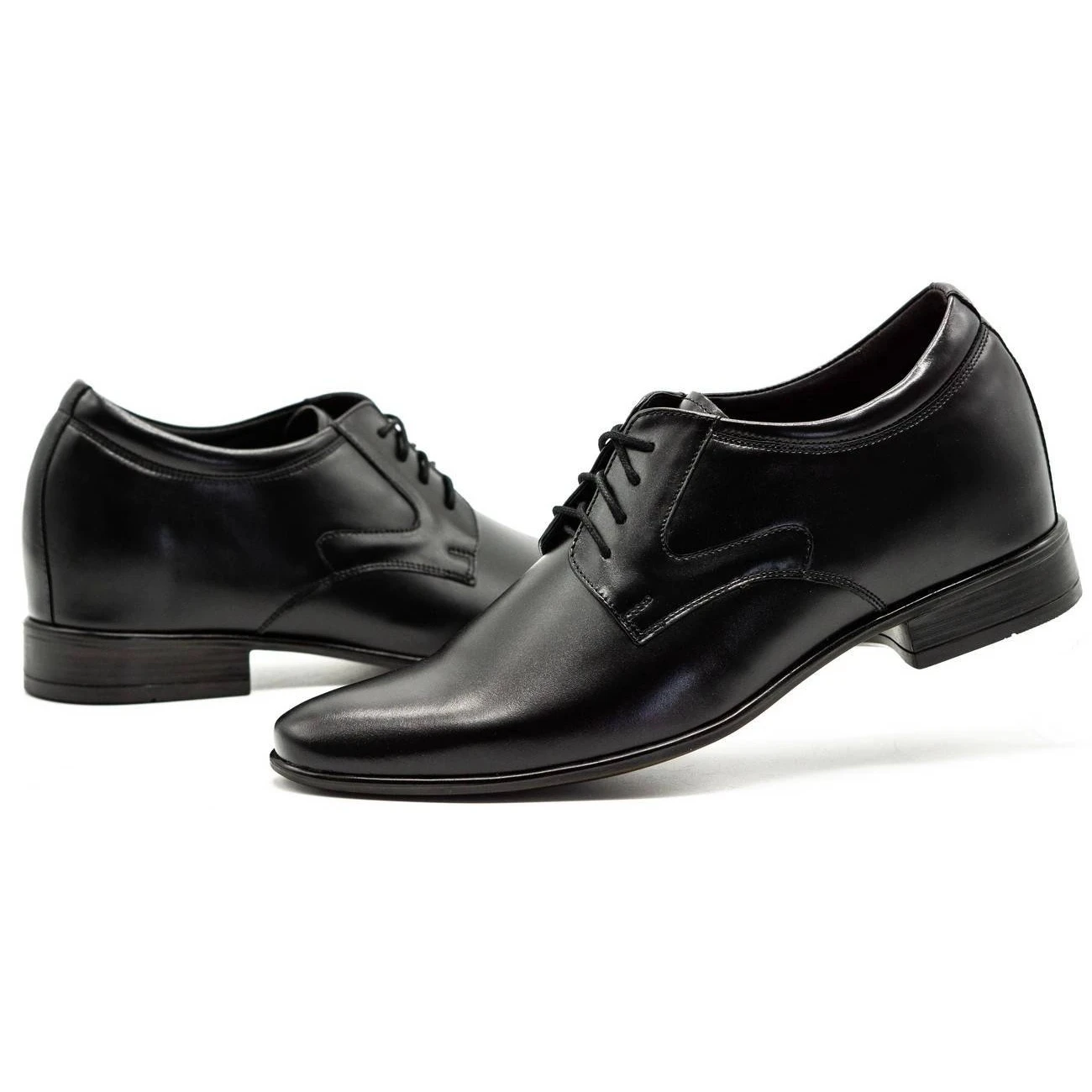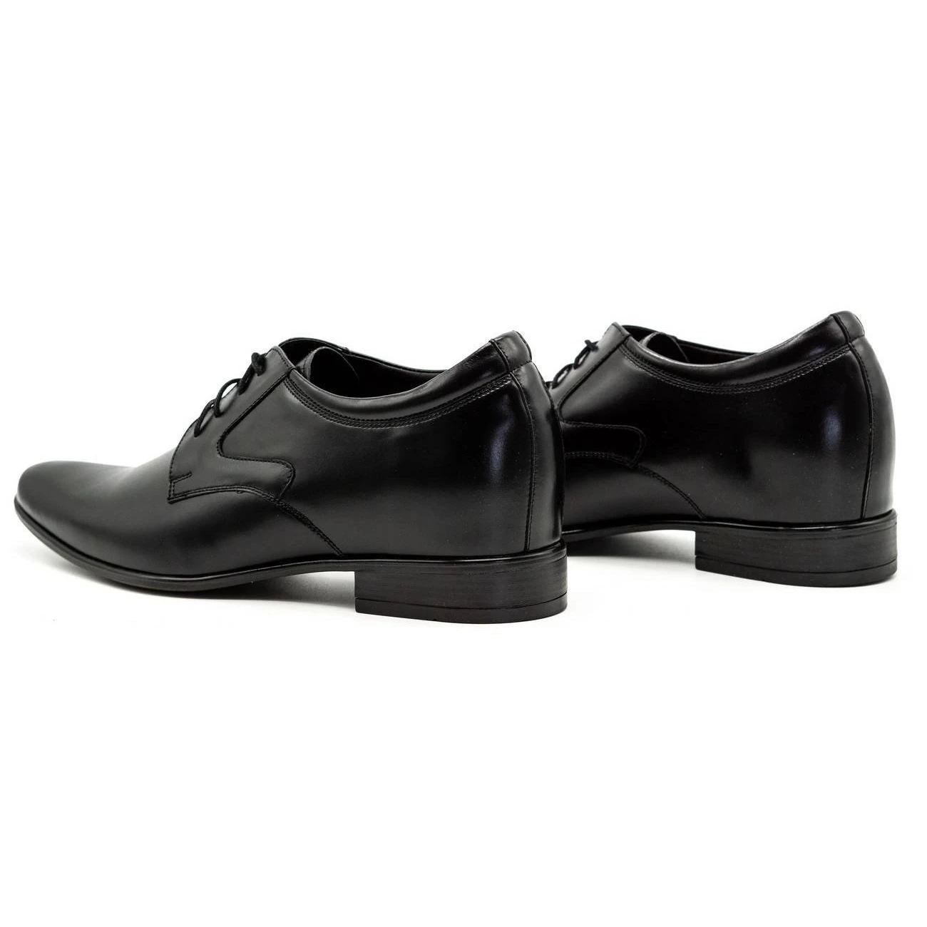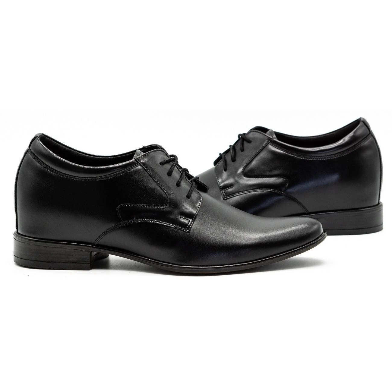 Ce modèle de chaussures a été créé pour les hommes qui souhaitent discrètement ajouter quelques centimètres à leur taille. Ces chaussures habillées noires sont entièrement fabriquées en cuir naturel et possèdent un talon intégré d’environ 4 centimètres de haut, invisible à l’œil nu. Portées avec un pantalon de costume, elles seront extrêmement élégantes.