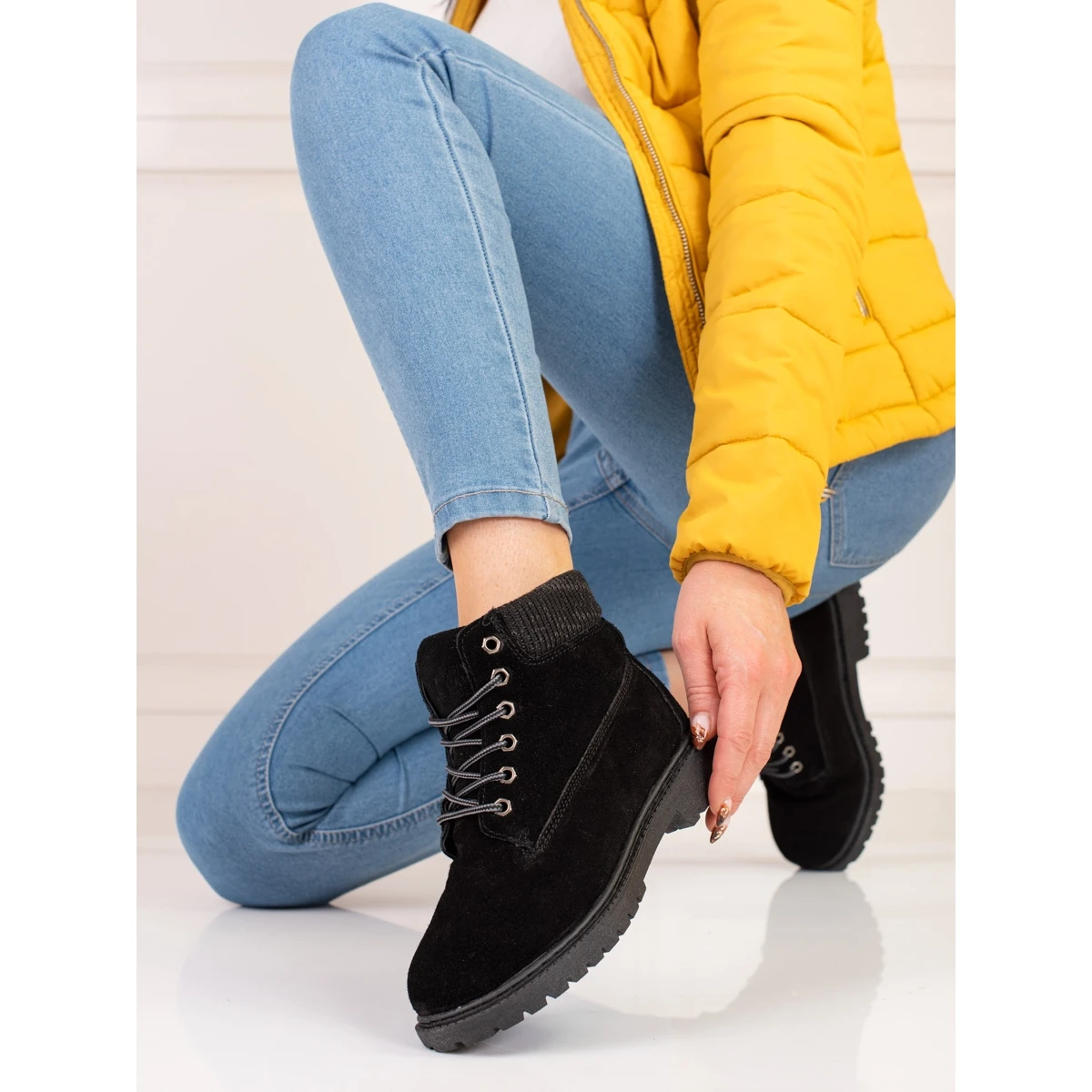 Tenus dans des tons clairs de beige, des trappeurs de chameau avec une semelle en plastique de 2,5 cm de haut, pour des chaussures dans lesquelles chaque femme parcourra confortablement ses chemins. Fabriqués en cuir naturel, ils sont dotés d’une isolation et d’un insert en fourrure agréable au toucher. La tige haute de 10-11 cm et le chaussant maintiennent parfaitement le pied.