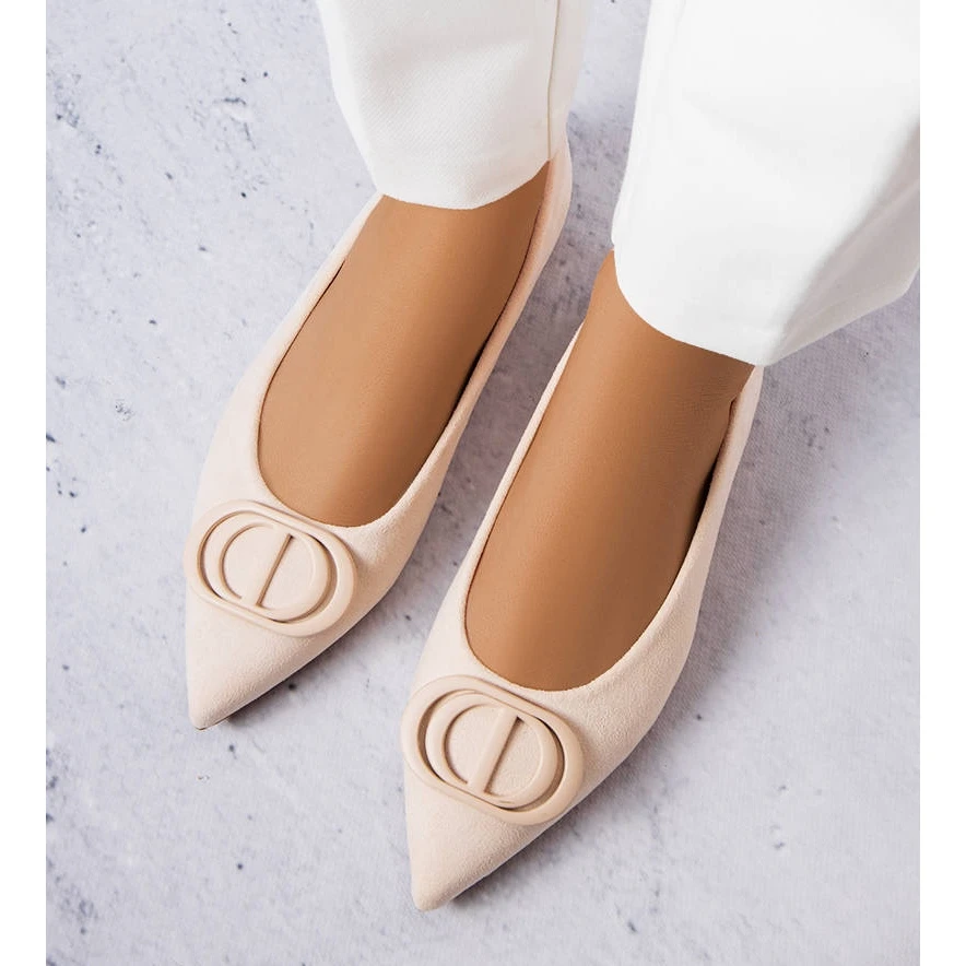 Ballerines Grignon en cuir suédé écologique. Monté sur une semelle plate. Slip-on, avec un bout pointu élégant. Devant orné d’une broche en plastique de couleur assortie. Les ballerines Grignon seront parfaites pour les fashionistas qui apprécient un look classique dans un style minimaliste. Numérotation standard, veuillez vous référer à votre taille.