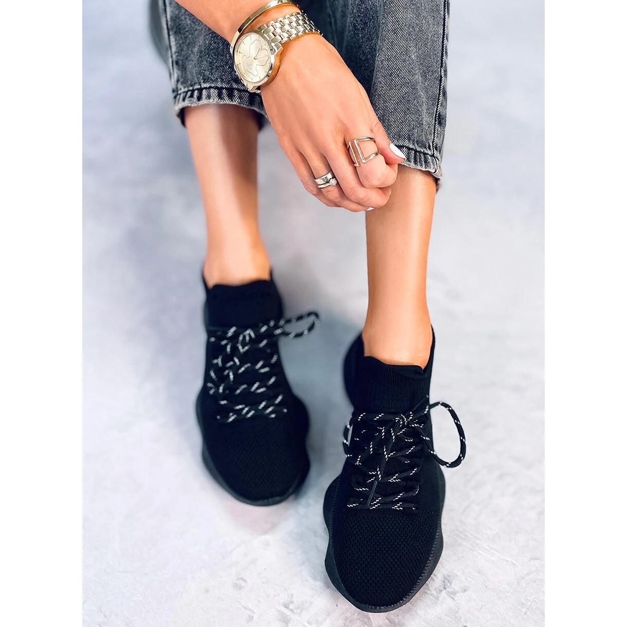 Chaussures de sport chaussettes – baskets pour femmes. Le modèle sur semelle gomme ultra-moderne est un hit absolu de cette saison ! Les chaussures sont en tissu chaussette élastique, grâce auquel elles s’adaptent parfaitement au pied. Si vous voulez profiter du confort à chaque pas, commandez-les dès aujourd’hui ! Insert intérieur – tissu.