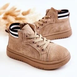 Les baskets montantes en daim naturel ont un bout renforcé à l’avant. De plus, la tige est finie avec une trépointe élastique. Les chaussures ont une semelle intérieure en cuir souple et naturel. La semelle antidérapante en matière caoutchouc est souple et sera parfaite pour les jeux extérieurs. Modèle avec une fermeture éclair sur le côté de la tige et des élastiques imitant les lacets. Les chaussures ont un talon renforcé. Commodité et confort garantis. Les baskets des tailles 21 à 25 ont des semelles différentes des baskets des tailles 26 à 31. Lors du choix d’une taille, veuillez utiliser le tableau des tailles.