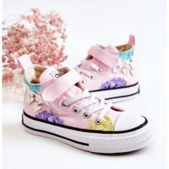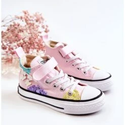 Superbes baskets pour enfants fermées par velcro avec bandes élastiques imitant les lacets. Fabriqué en matière textile avec un renfort en caoutchouc sur la pointe. De beaux imprimés et des papillons cousus sur le côté de la tige rendent ces chaussures vraiment magnifiques. La semelle intérieure souple en tissu est amovible et profilée. Les baskets ont un talon légèrement raidi. La semelle est en caoutchouc, antidérapante. Lorsque vous choisissez une taille, veuillez utiliser le tableau des tailles.
