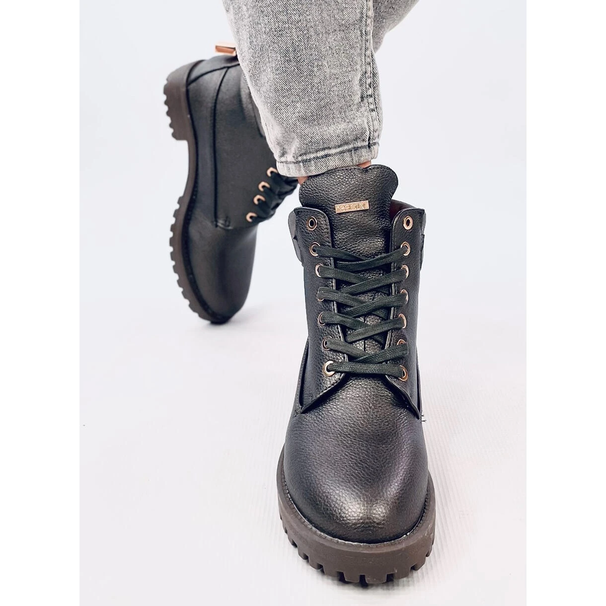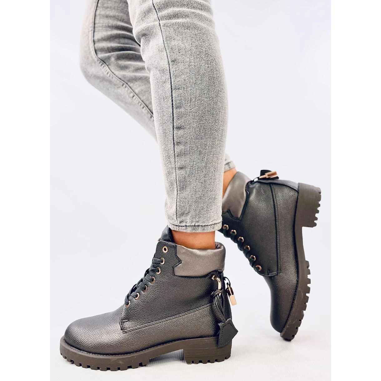 Bottes Ă lacets classiques – bottes en bois pour femmes. Un accent charmant – un pendentif en forme de cadenas dorĂ© Ă l’arrière de la tige. Ils ont l’air très soignĂ© sur la jambe. Une semelle solide avec un protecteur offre une grande isolation et un confort pendant la marche. Ils sont doublĂ©s de fourrure dĂ©licate. MatĂ©riau extĂ©rieur – cuir Ă©cologique.