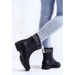 Classiques, les bottes en caoutchouc pour femmes sont fabriquées en caoutchouc. Ce modèle a été orné d’une rayure avec une inscription en haut de la tige. La semelle intérieure amovible est en tissu. Les chaussures sont montées sur une semelle en caoutchouc avec un talon plat. De plus, il y a un bootstrap à l’arrière, c’est à dire une boucle qui facilite l’enfilage et le déchaussage. Lorsque vous choisissez une taille, veuillez utiliser le tableau des tailles.