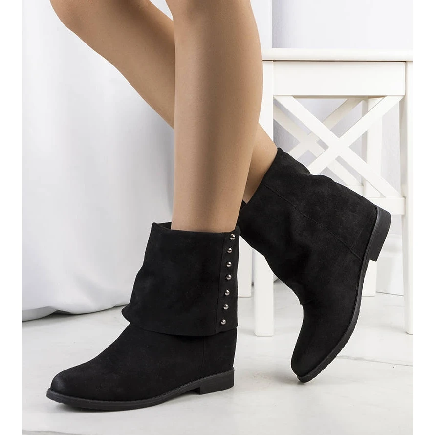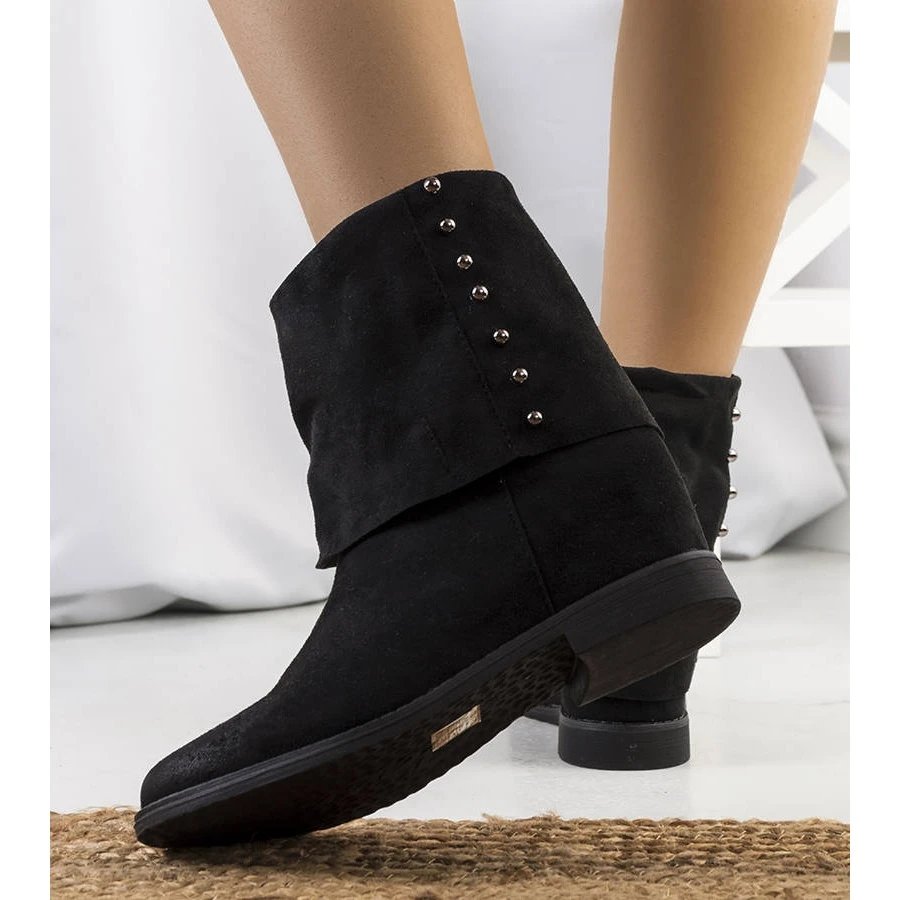 Bottines Sullivan à talon plat, avec une tige à la cheville ornée d’un revers. Décoré de clous ronds. Avec bout rond, à enfiler. Fabriqué en éco-cuir suédé. Les boots Sullivan seront parfaites au printemps et en automne ! Numérotation standard, veuillez suivre votre taille.