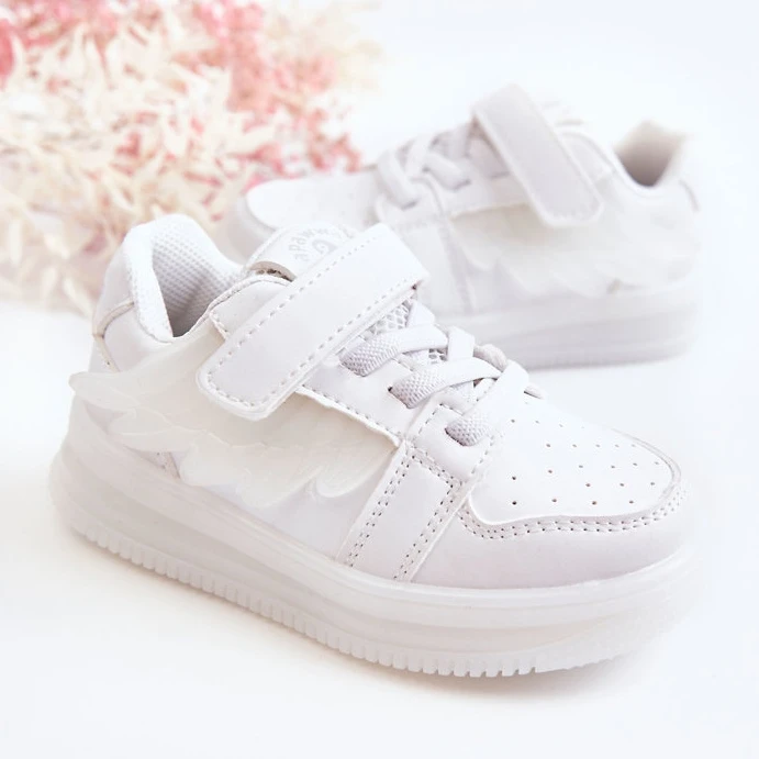 Jolies chaussures pour enfants en cuir écologique. Ils ont une perforation sur le devant et un élément décoratif en caoutchouc sur le côté de la tige en forme d’aile. Le talon est légèrement raidi. Chaussures à fermeture velcro avec élastiques imitant les lacets. Ils sont montés sur une plate-forme antidérapante en caoutchouc. La semelle intérieure en cuir naturel est douce et confortable à utiliser, et en plus profilée. Un super modèle pour votre tout-petit ! Lorsque vous choisissez une taille, veuillez utiliser le tableau des tailles.