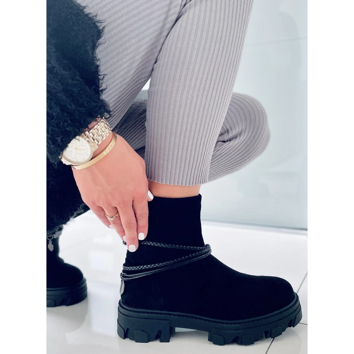 Boots femme en daim à semelle haute. Le modèle avec une tige agrémentée d’une bride amovible à brides est un must absolu 🙂 La fermeture zippée pratique permet un enfilage rapide et sans problème. Ils sont faits de daim écologique et l’intérieur est doublé de fourrure délicate.