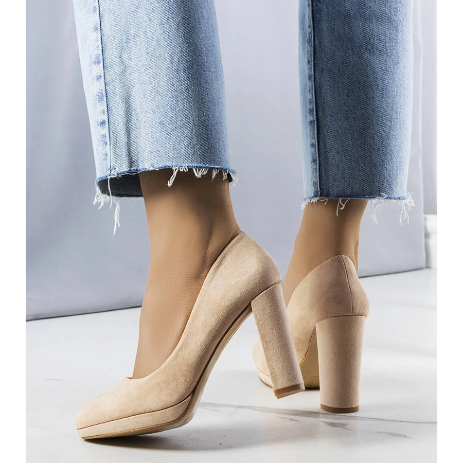 Escarpins Leonard avec un bloc enduit et une plateforme supplĂ©mentaire. Nez rond et fin. glisser sur. FabriquĂ© en Ă©co-cuir suĂ©dĂ©, insert en Ă©co-cuir. Le tout dans une seule couleur. C’est un modèle qui allongera parfaitement vos jambes. NumĂ©rotation standard.