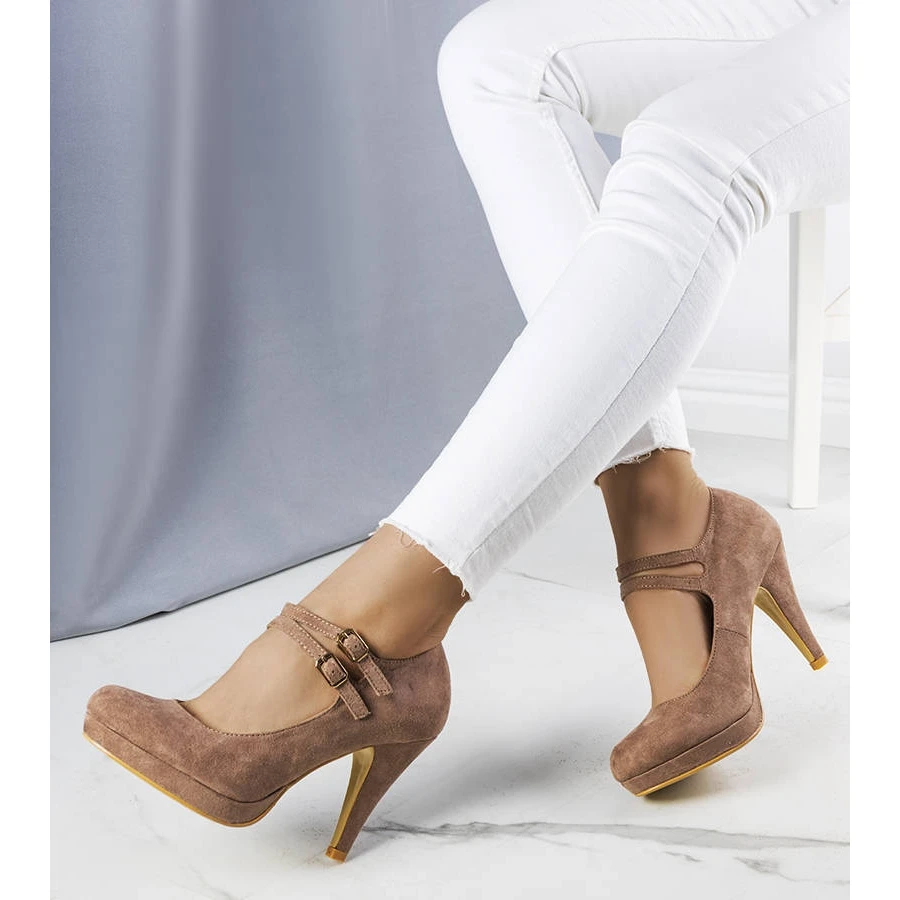 Escarpins Quinn avec un talon aiguille enduit et une plateforme supplémentaire. Nez rond et fin. Fermé par de fines lanières avec une petite boucle. Fabriqué en cuir suédé écologique. Le tout dans une seule couleur. C’est un modèle qui allongera parfaitement vos jambes. Numérotation standard, veuillez vous référer à votre taille.