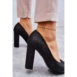 Les escarpins classiques sont fabriqués dans un matériau brillant avec un tissage intéressant. Le modèle parfait pour toutes sortes d’événements ou de réunions occasionnelles. Le bout pointu et le talon en forme de tige affinent optiquement les jambes. La semelle intérieure est en cuir écologique souple, ce qui augmente le confort d’utilisation de la chaussure. Lorsque vous choisissez une taille, veuillez utiliser le tableau des tailles.