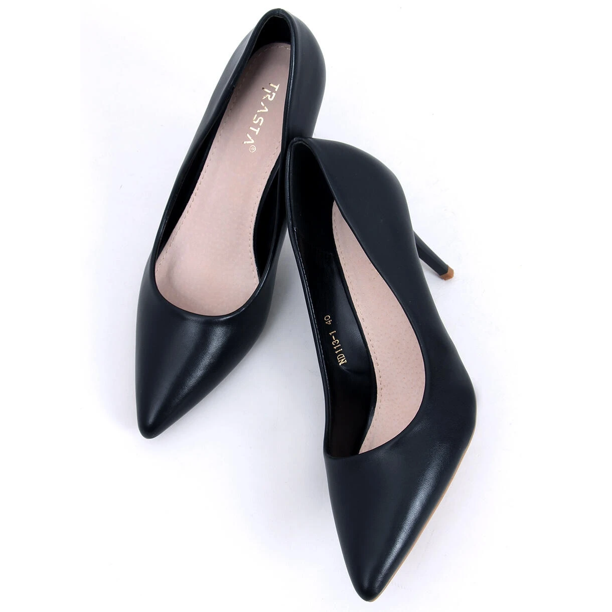 Escarpins grain femme sur talon de 9 cm. La coupe aux orteils effilés est non seulement à la mode, mais aussi extrêmement galbée. Les talons hauts classiques pour femmes en noir sont un article indispensable dans la garde-robe de chaque femme 🙂 Matériau extérieur – cuir écologique.
