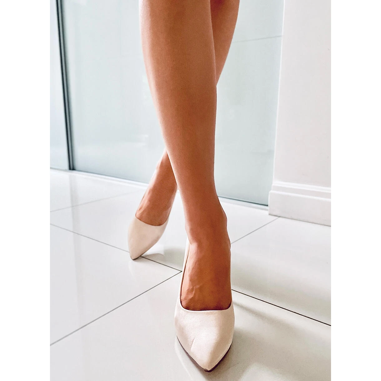 Escarpins femme habillés sur un talon fin de 10,5 cm. Difficile d’imaginer un vêtement plus féminin ! Ce modèle unique recouvert de tissu satiné est incroyablement sensuel… Ils ont des nez galbés en une pointe délicate. Que pourriez-vous demander de plus? Des chaussures parfaites pour les occasions spéciales – bal de promo, mariage ou bal…