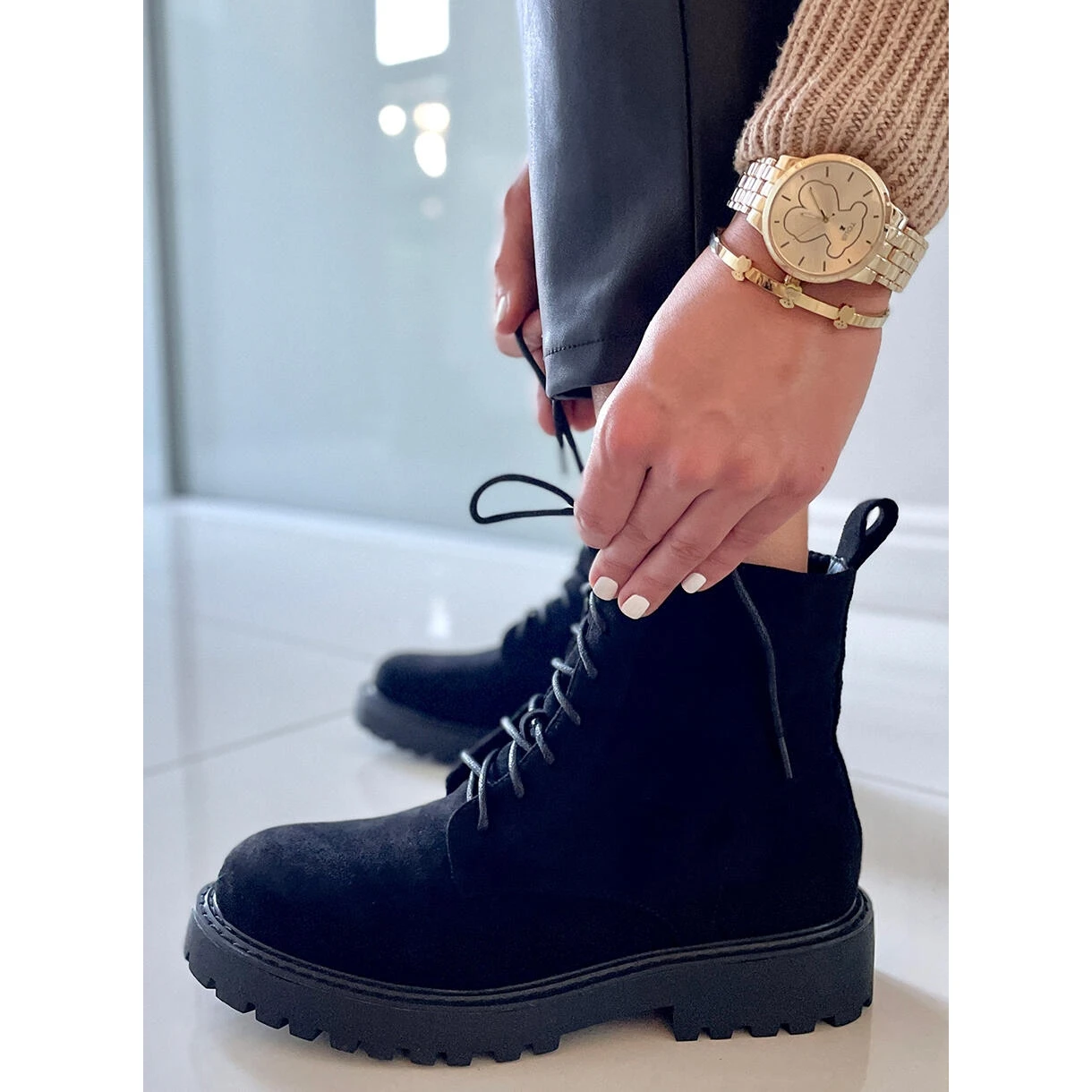 Bottes en daim pour femmes – travailleurs protecteurs. La fermeture Ă©clair pratique sur le cĂ´tĂ© de la tige assure un enfilage rapide et sans problème, et grâce au laçage traditionnel, les chaussures peuvent ĂŞtre parfaitement ajustĂ©es Ă l’Ă©paisseur du pied. Ils rĂ©pondront sĂ»rement Ă vos attentes 🙂 Ils sont fabriquĂ©s en daim Ă©cologique, et l’intĂ©rieur est doublĂ© de fourrure dĂ©licate.