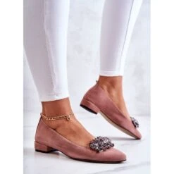 Ballerines Ă©lĂ©gantes en daim naturel de haute qualitĂ©. Ils ont un bout pointu. Modèle Ă enfiler. MontĂ©e sur un petit talon plat. Sur le devant, il y a un magnifique ornement fait de cristaux d’imitation. La semelle intĂ©rieure en cuir naturel est très douce et confortable Ă utiliser. Vous vous sentirez extrĂŞmement Ă l’aise dans ces ballerines. Confort d’utilisation garanti ! Vous devez absolument les avoir dans votre garde-robe ! Lorsque vous choisissez une taille, veuillez utiliser le tableau des tailles.