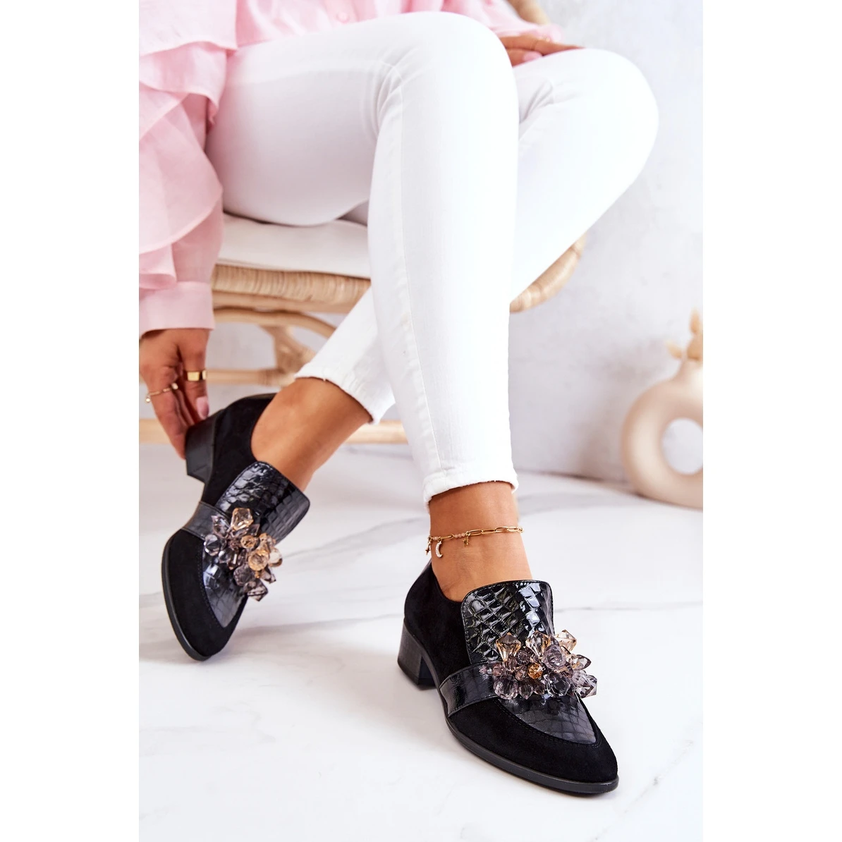 Les chaussures sont en cuir naturel. Motif crocodile tendance à l’avant et à l’arrière. Une semelle intérieure souple en cuir naturel procure une sensation de confort à chaque pas. Chaussures fabriquées avec le souci du détail. Un bel ornement sur le devant donne de l’élégance aux chaussures ! Les chaussures ont un talon bas. N’hésitez pas et achetez aujourd’hui! Lorsque vous choisissez une taille, veuillez suivre le tableau des tailles, qui est disponible en survolant ou en cliquant sur une taille donnée.